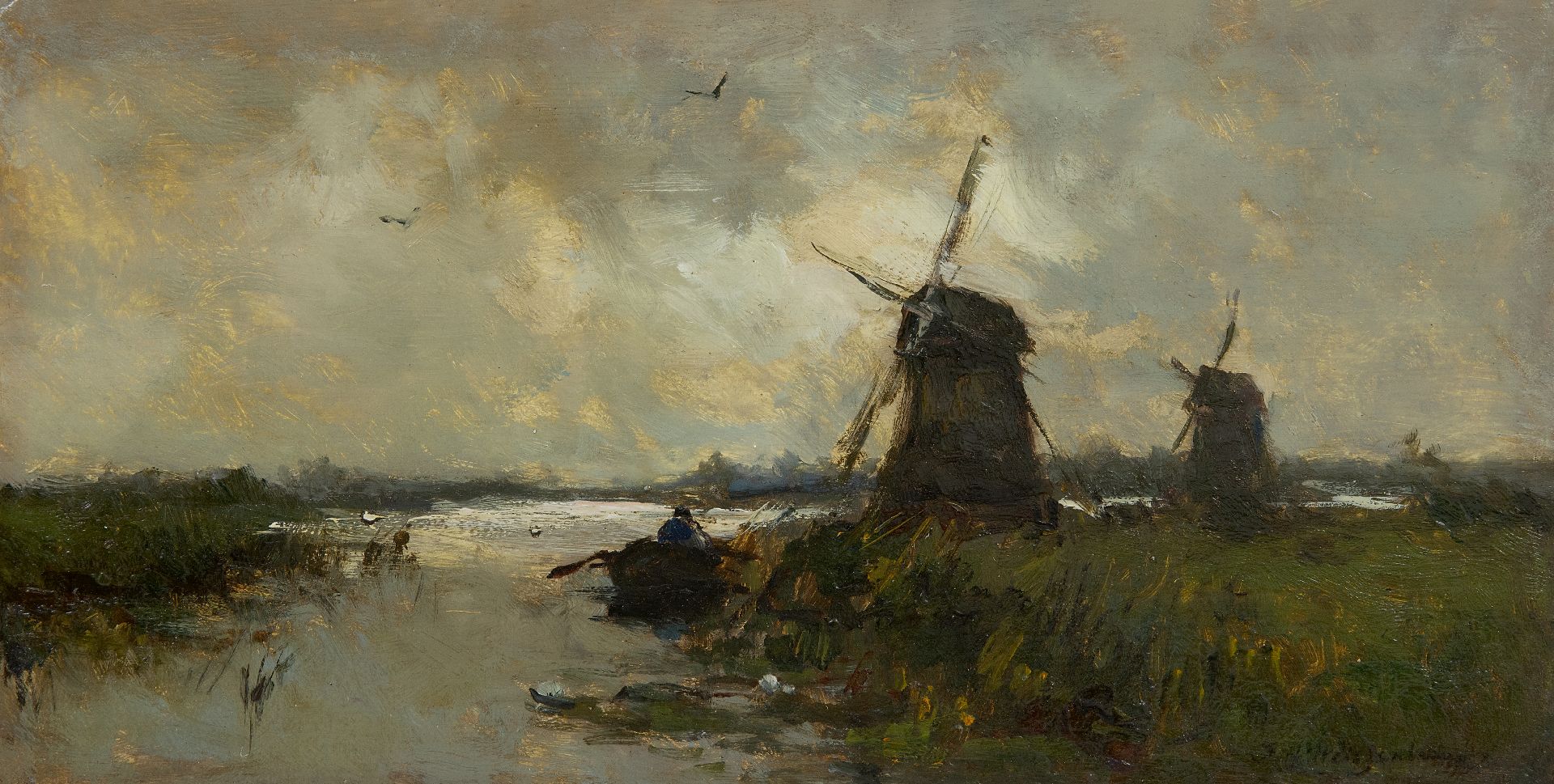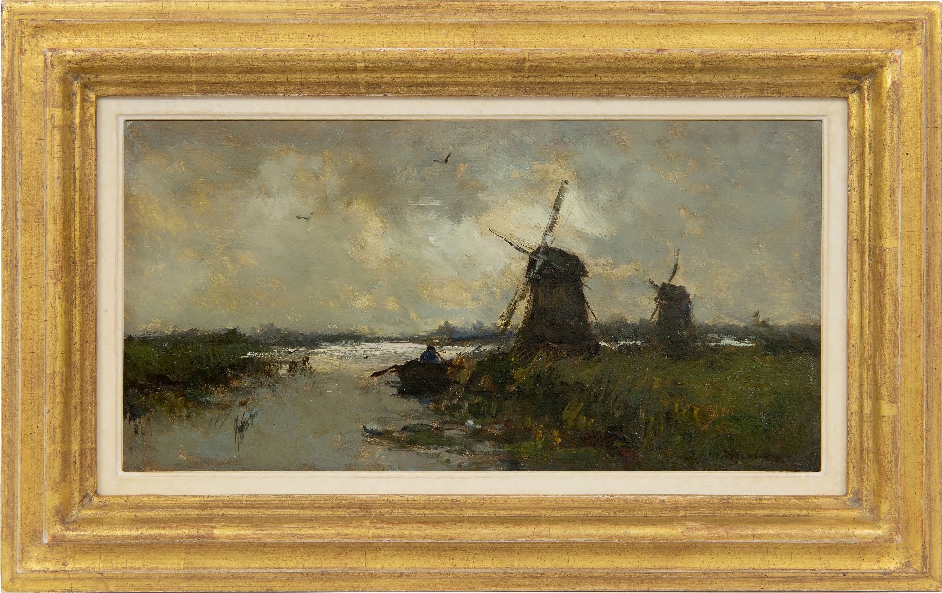 Jan Hendrik Weissenbruch kunstwerk • schilderij • voorheen te koop Molens in een polderlandschap