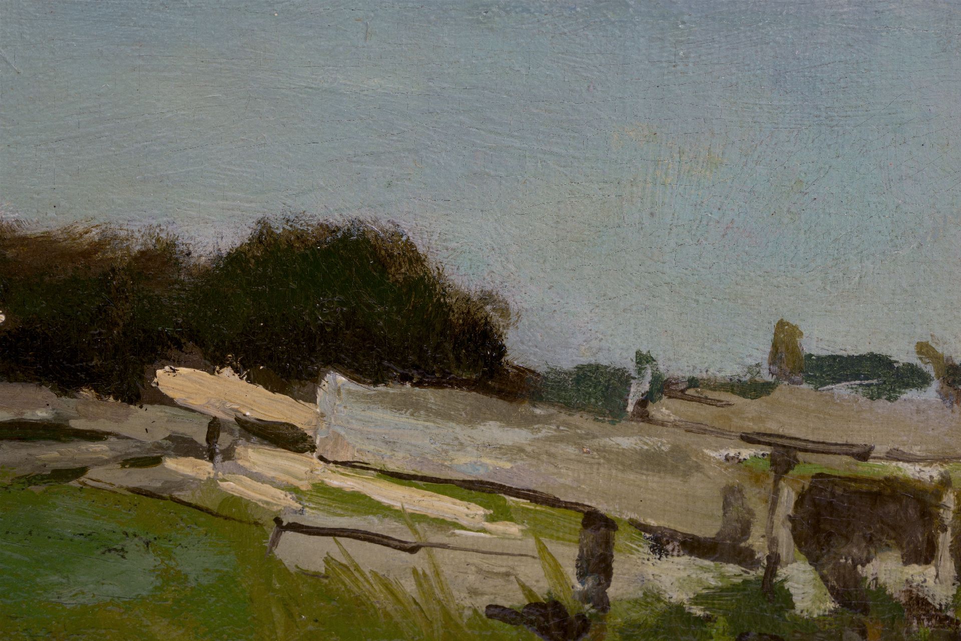 olieverf op doek op paneel 23,0 x 43,1 cm, gesigneerd rechtsonder
