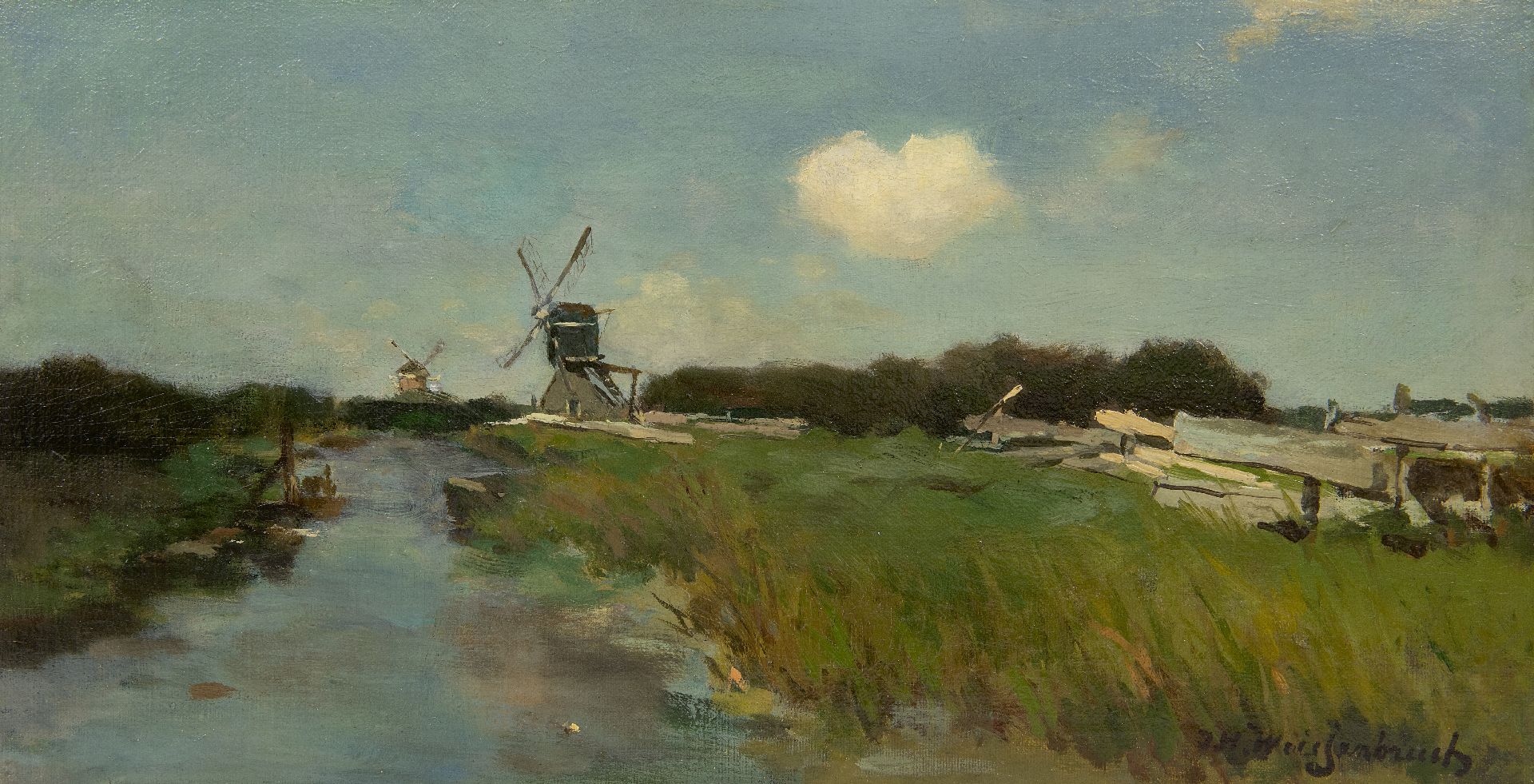 Jan Hendrik Weissenbruch kunstwerk • schilderij • voorheen te koop Molens langs poldervaart bij Noorden