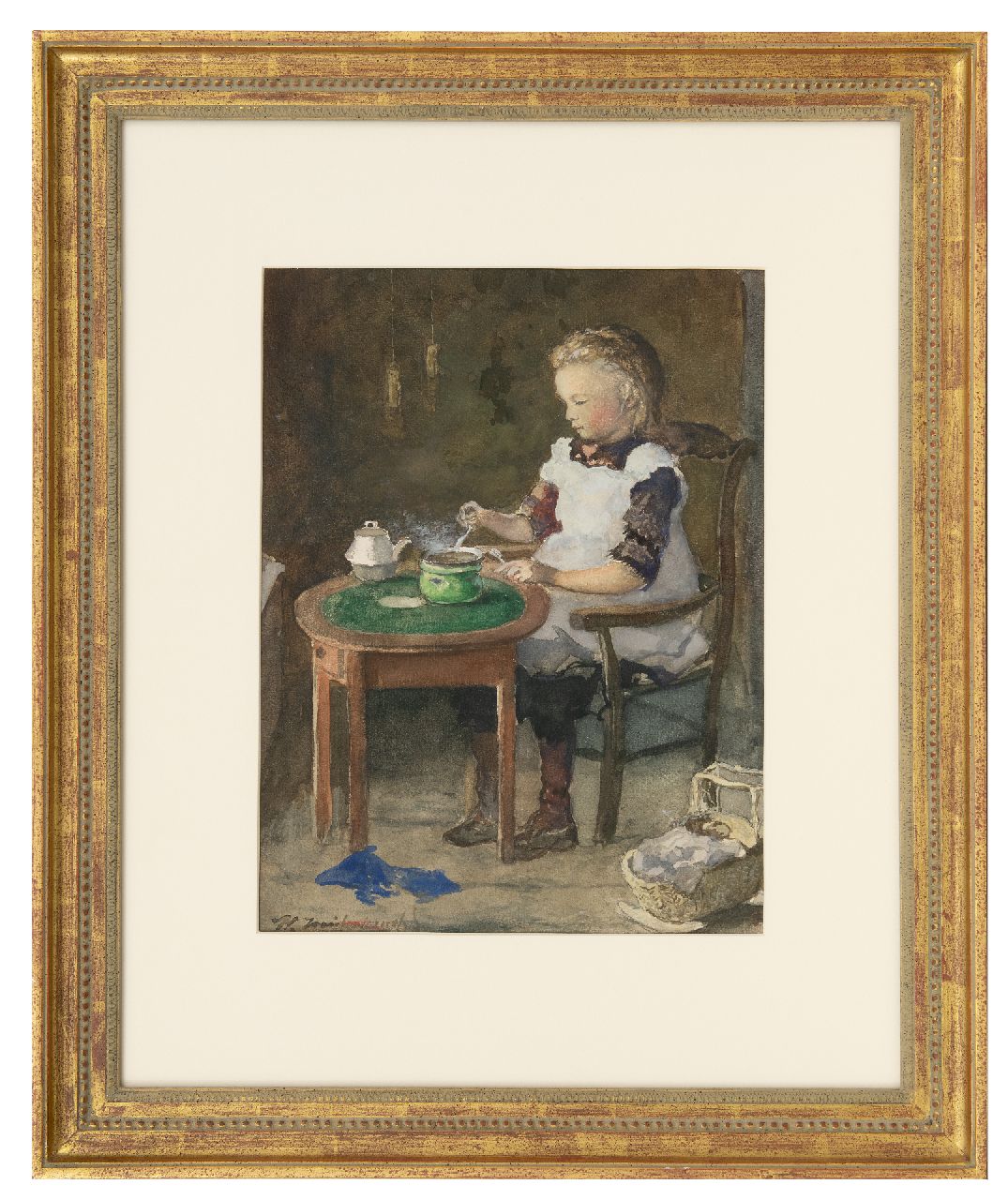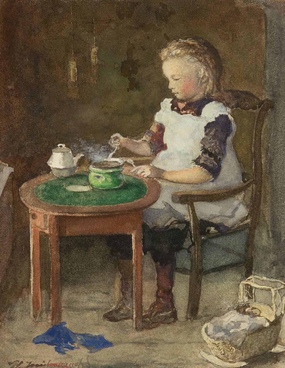 Jan Hendrik Weissenbruch kunstwerk • aquarel • tekening • te koop Pannenkoekjes bakken op een komfoor