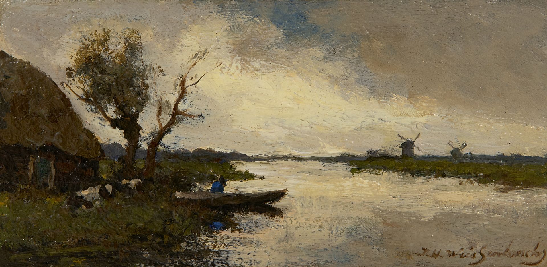 Jan Hendrik Weissenbruch wordt beschouwd als een van de meest begaafde schilders van de Haagse School. Hij schilderde vooral landschappen in de omgeving van Den Haag en in het polderland rond Boskoop en Gouda. Zijn grote kracht was het weergeven van het typisch Hollandse licht, soms helder, soms diffuus en dampig. Ook luchten boeiden hem. 'Licht en lucht zijn de grote tovenaars', zei hij, 'Zowel grijze regenluchten als heldere wolkenluchten op een zomerse dag'. 'Schilders kunnen nooit genoeg naar de lucht kijken.' Weissenbruch gaf les aan Victor Bauffe en Théophile de Bock.