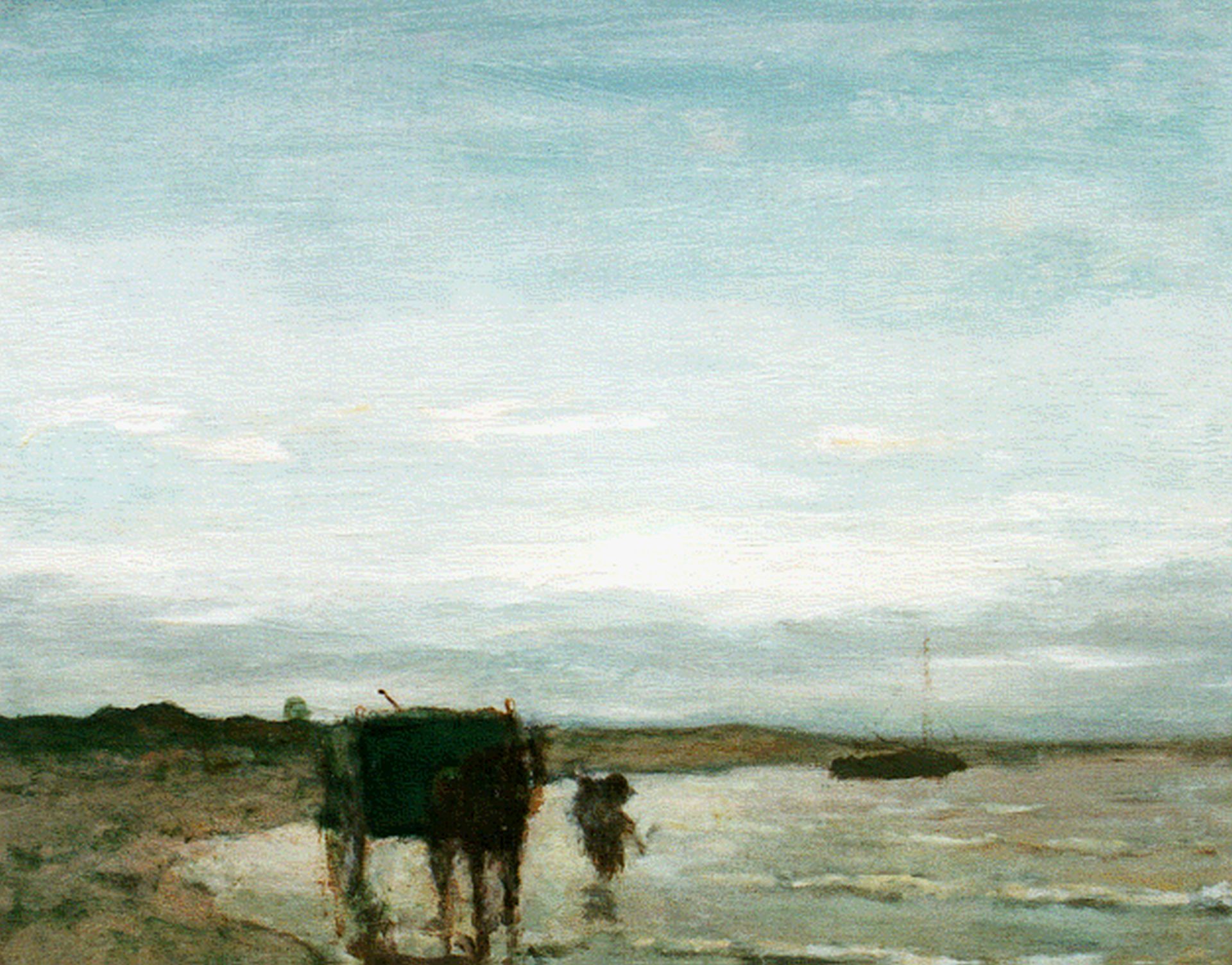 Jan Hendrik Weissenbruch kunstwerk • schilderij • voorheen te koop Schelpenvisser aan de kustlijn