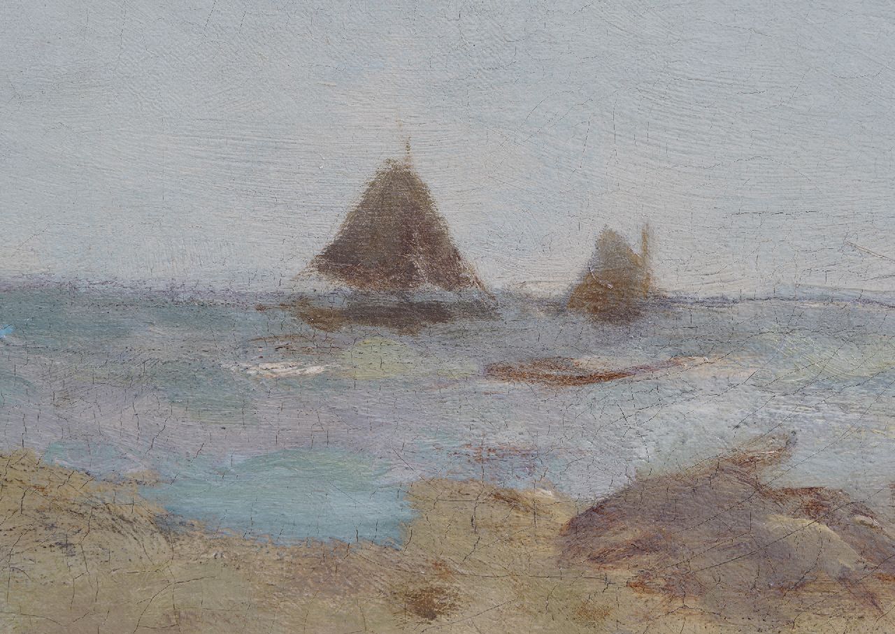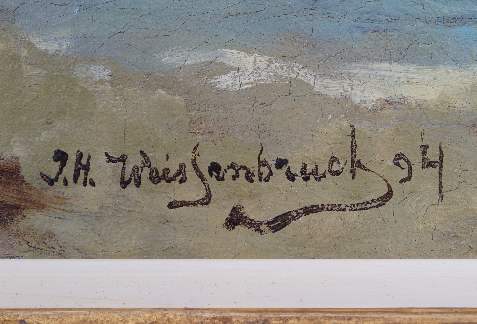 Jan Hendrik Weissenbruch | Bomschuiten aan de vloedlijn, olieverf op doek, 38,9 x 50,9 cm, gesigneerd l.o.