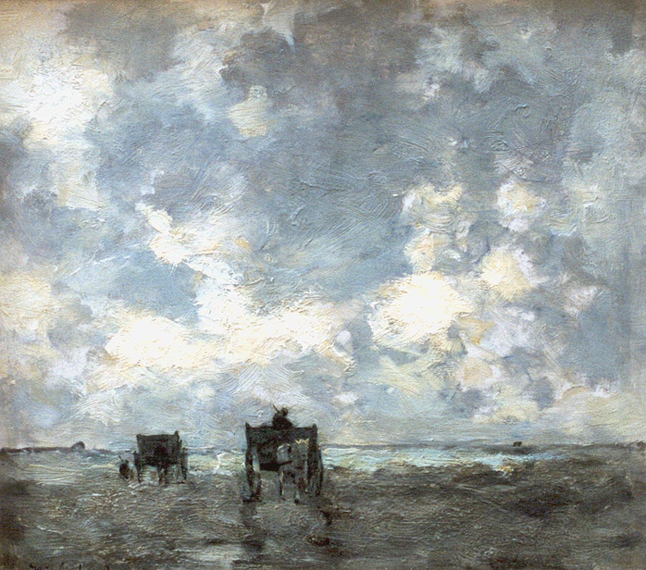 Jan Hendrik Weissenbruch kunstwerk • schilderij • voorheen te koop Strandgezicht met schelpenvissers