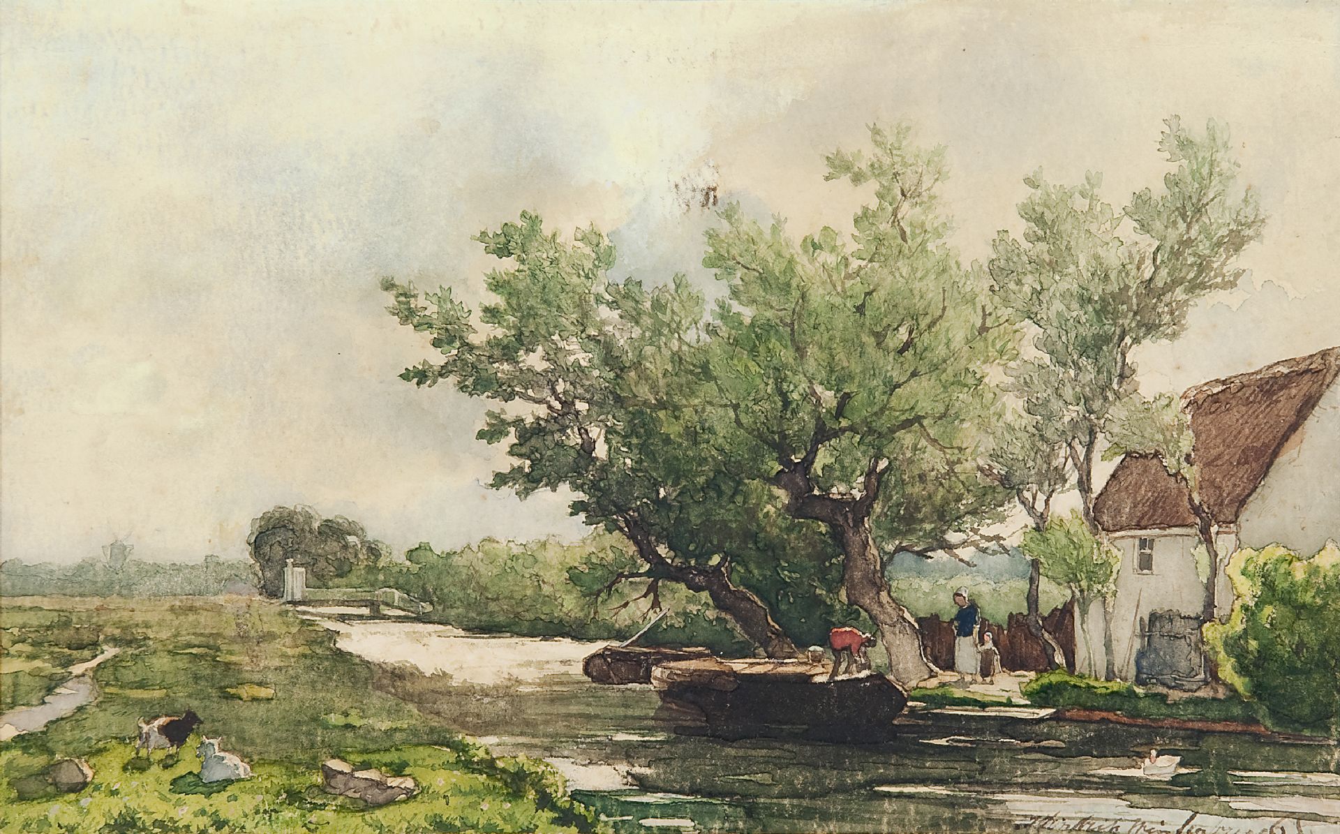 Jan Hendrik Weissenbruch kunstwerk • aquarel • tekening • te koop Trekvaart langs de Benoordenhoutseweg bij Den Haag