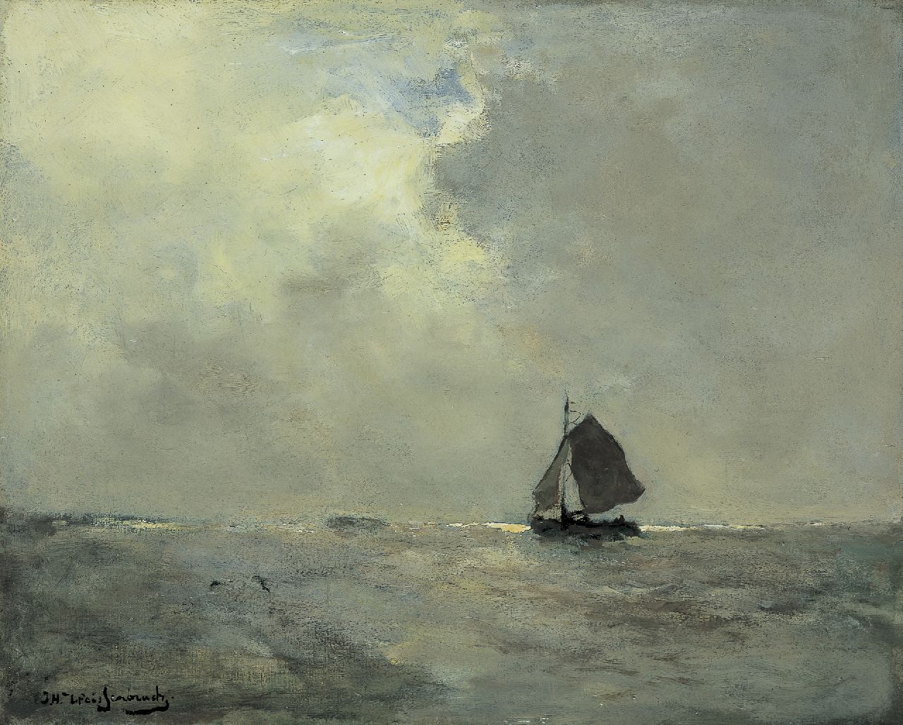 Jan Hendrik Weissenbruch kunstwerk • schilderij • voorheen te koop Zeilboot voor het strand