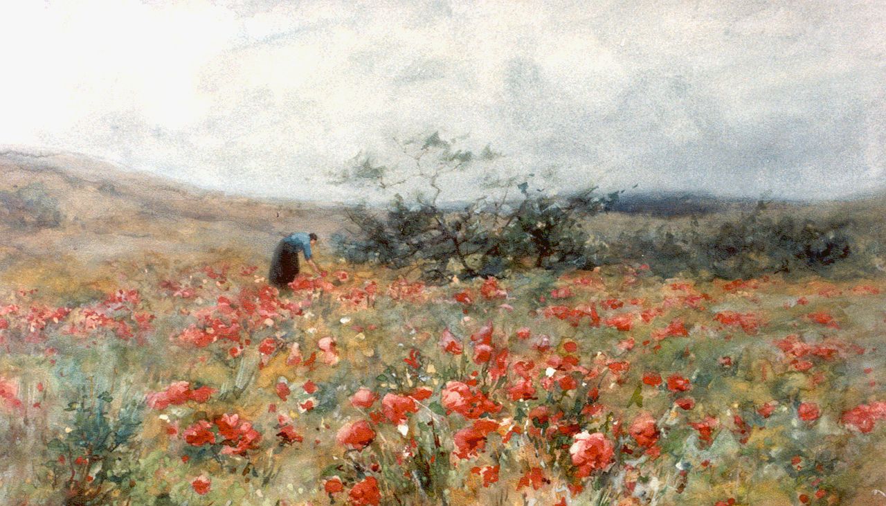 Jan Hillebrand Wijsmuller kunstwerk • aquarel • tekening • voorheen te koop Veld met klaprozen
