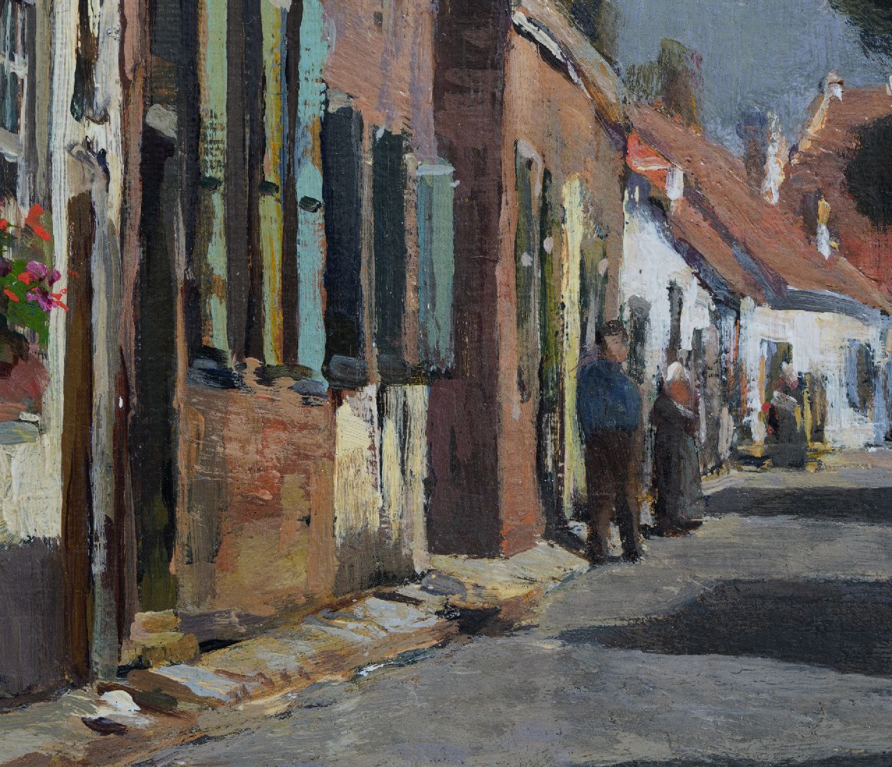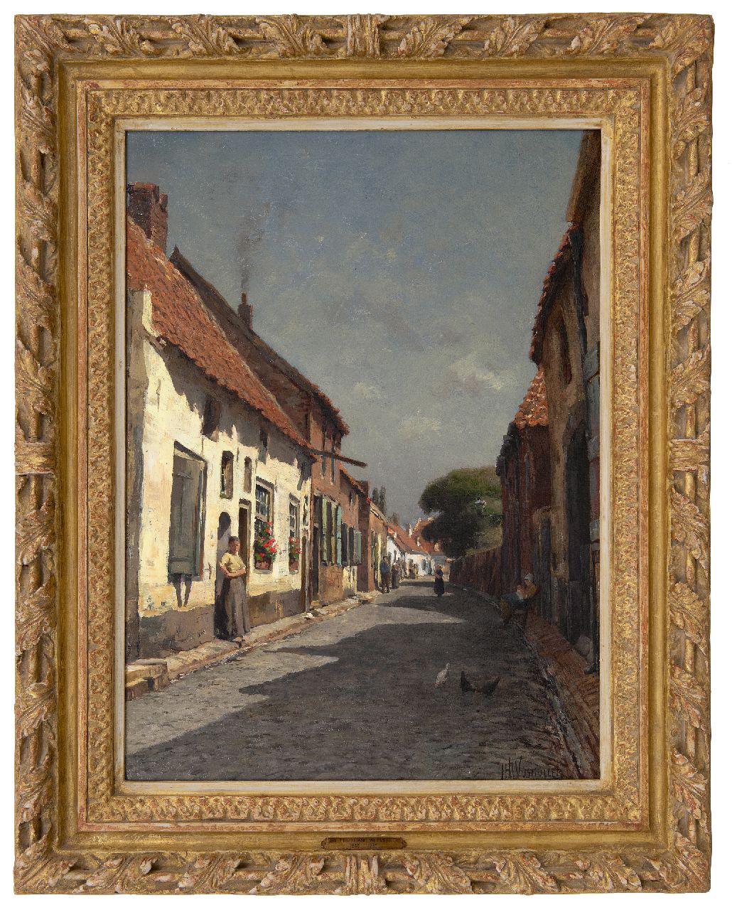 Jan Hillebrand Wijsmuller kunstwerk • schilderij • te koop De Korte Kerkstraat (voorheen Zaksteeg) in Hattem op een zonnige dag