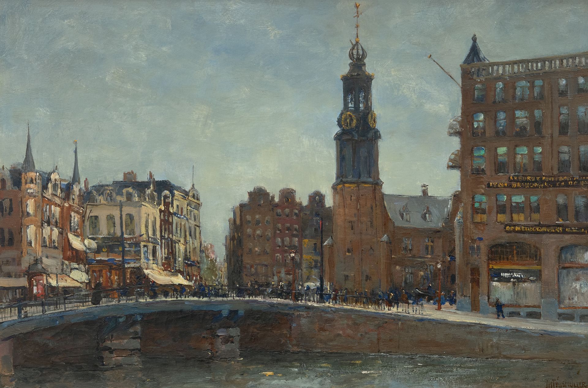 Jan Hillebrand Wijsmuller kunstwerk • schilderij • voorheen te koop Gezicht op De Munt, Amsterdam