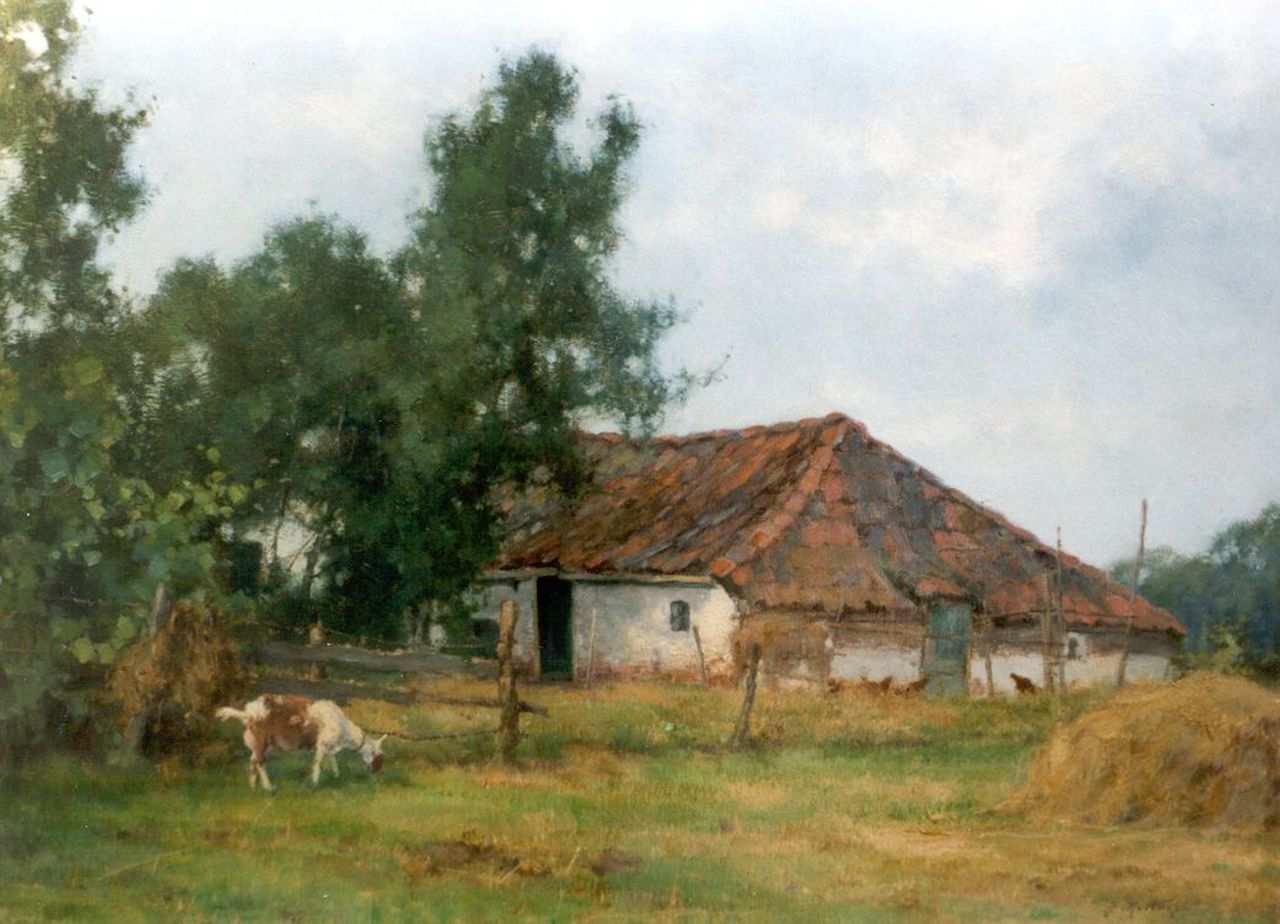 Jan Holtrup kunstwerk • schilderij • voorheen te koop Geitje bij een boerderij in Friesland
