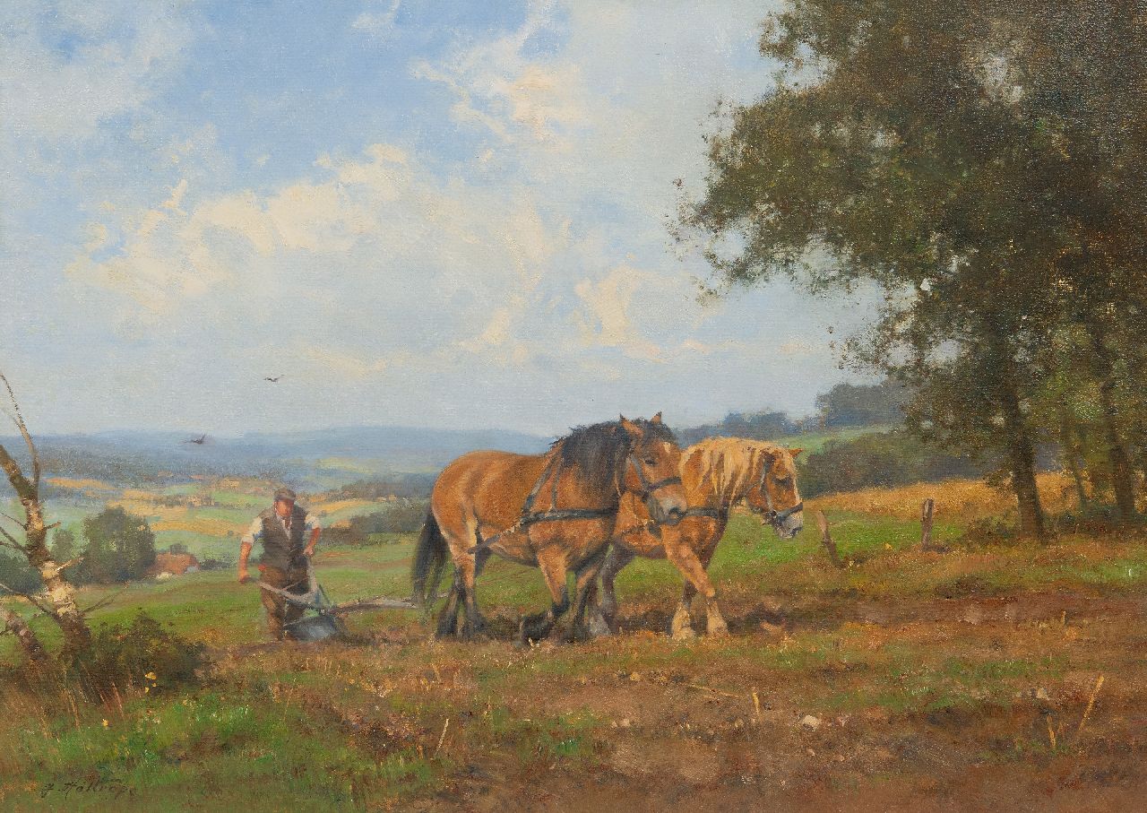Jan Holtrup kunstwerk • schilderij • te koop Ploegende boer bij Groesbeek