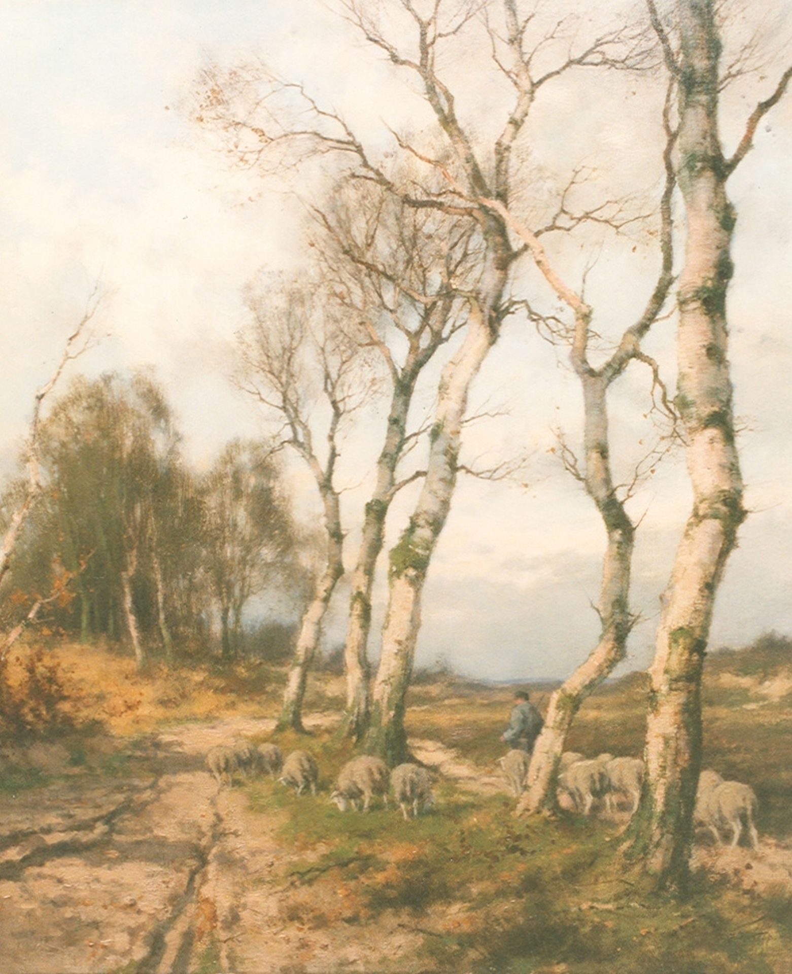 Jan Holtrup kunstwerk • schilderij • voorheen te koop Schapen en herder op de heide