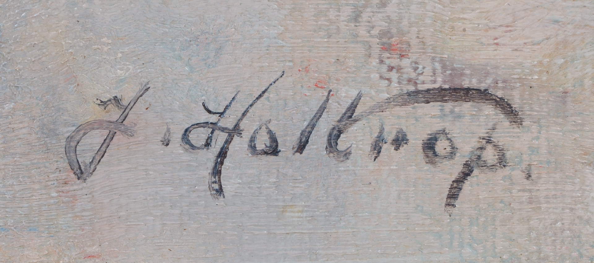 olieverf op doek 60,3 x 50,3 cm, gesigneerd rechtsonder en op spieraam en te dateren ca. 1973