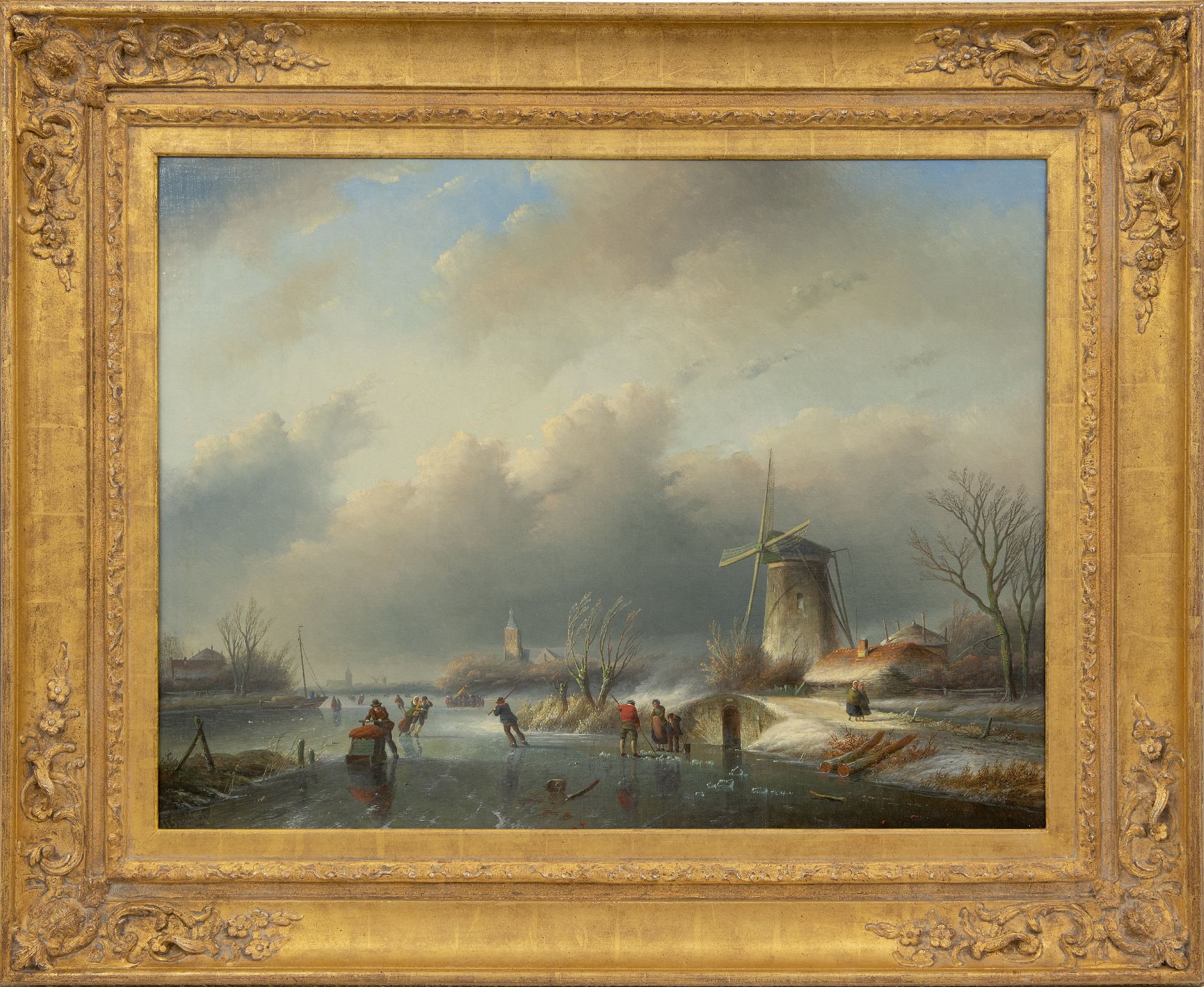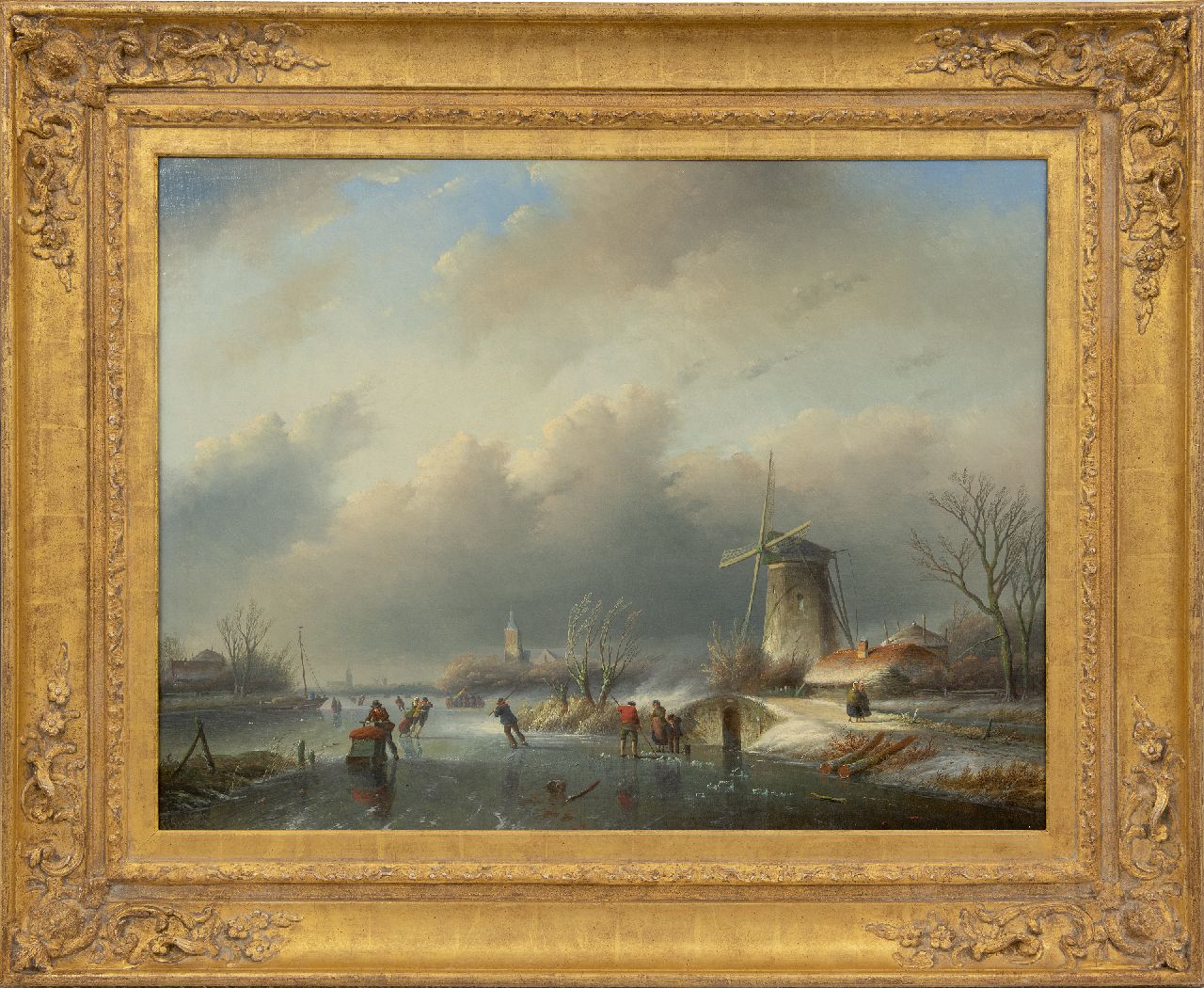 Jan Jacob Spohler kunstwerk • schilderij • te koop Bedrijvigheid op het ijs bij een molen