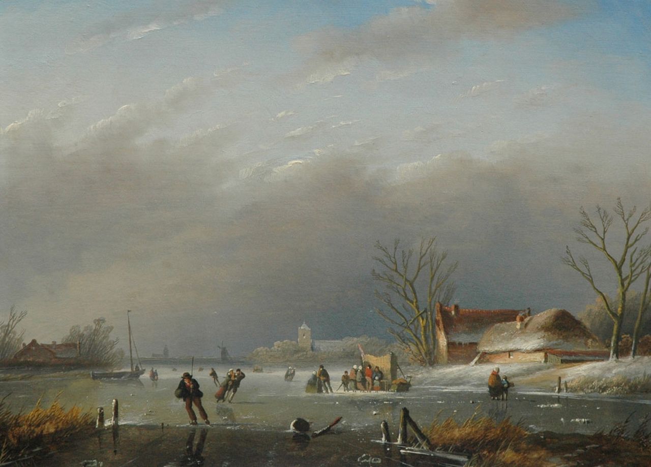 Jan Jacob Spohler kunstwerk • schilderij • voorheen te koop Een middag op het ijs