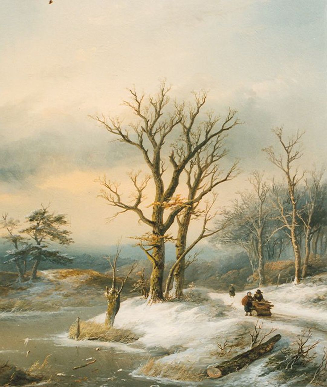 Jan Jacob Spohler kunstwerk • schilderij • voorheen te koop Figuren in een winterlandschap