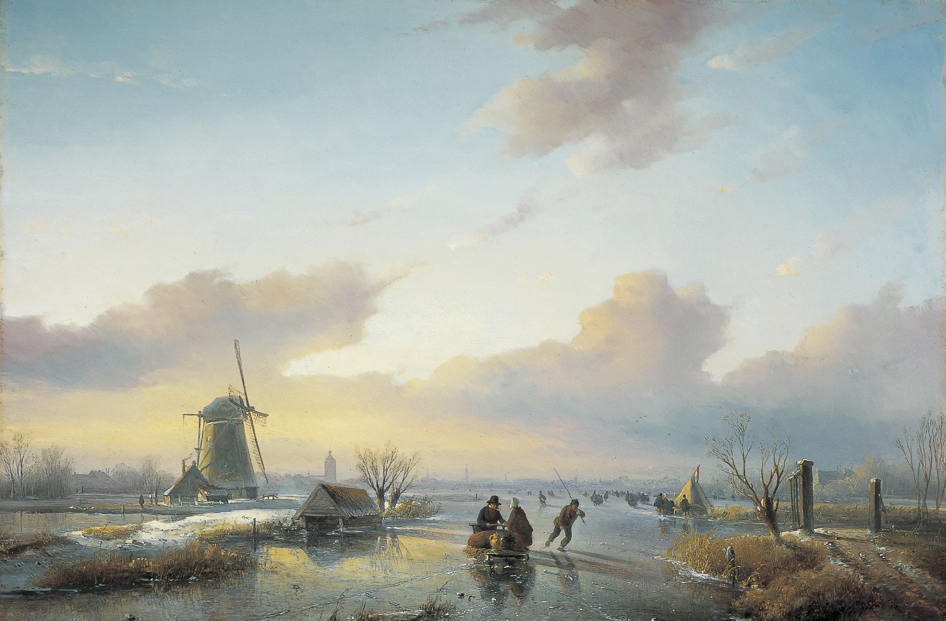 Jan Jacob Spohler | IJsgezicht met schaatsers, olieverf op doek, 59,5 x 80,5 cm, gesigneerd l.o.