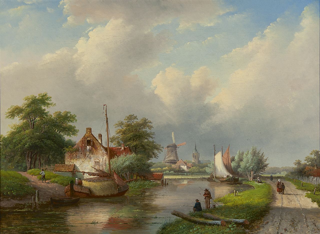 Jan Jacob Spohler kunstwerk • schilderij • voorheen te koop Riviergezicht in de zomer