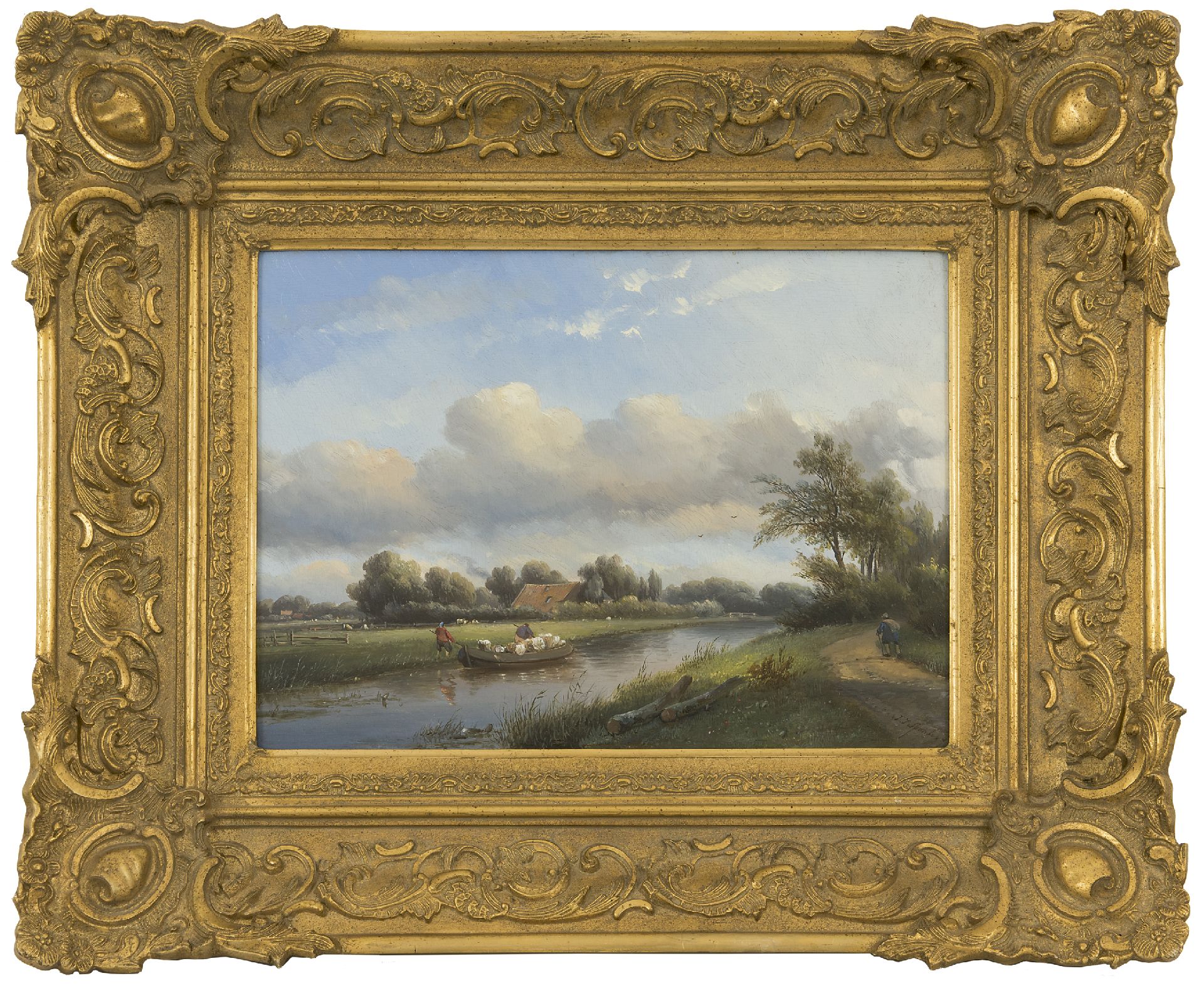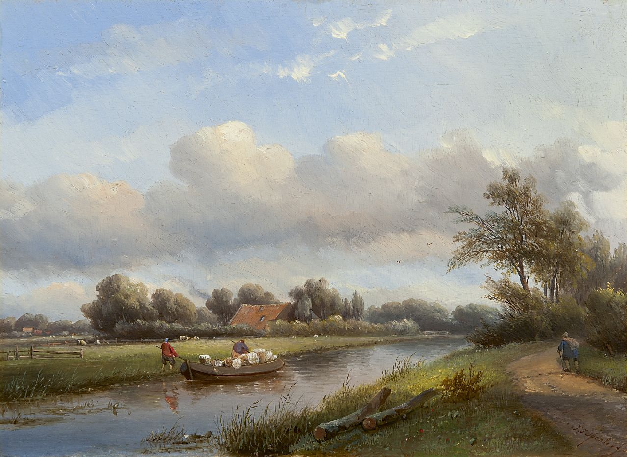 Jan Jacob Spohler kunstwerk • schilderij • voorheen te koop Trekvaart met boerenschuit