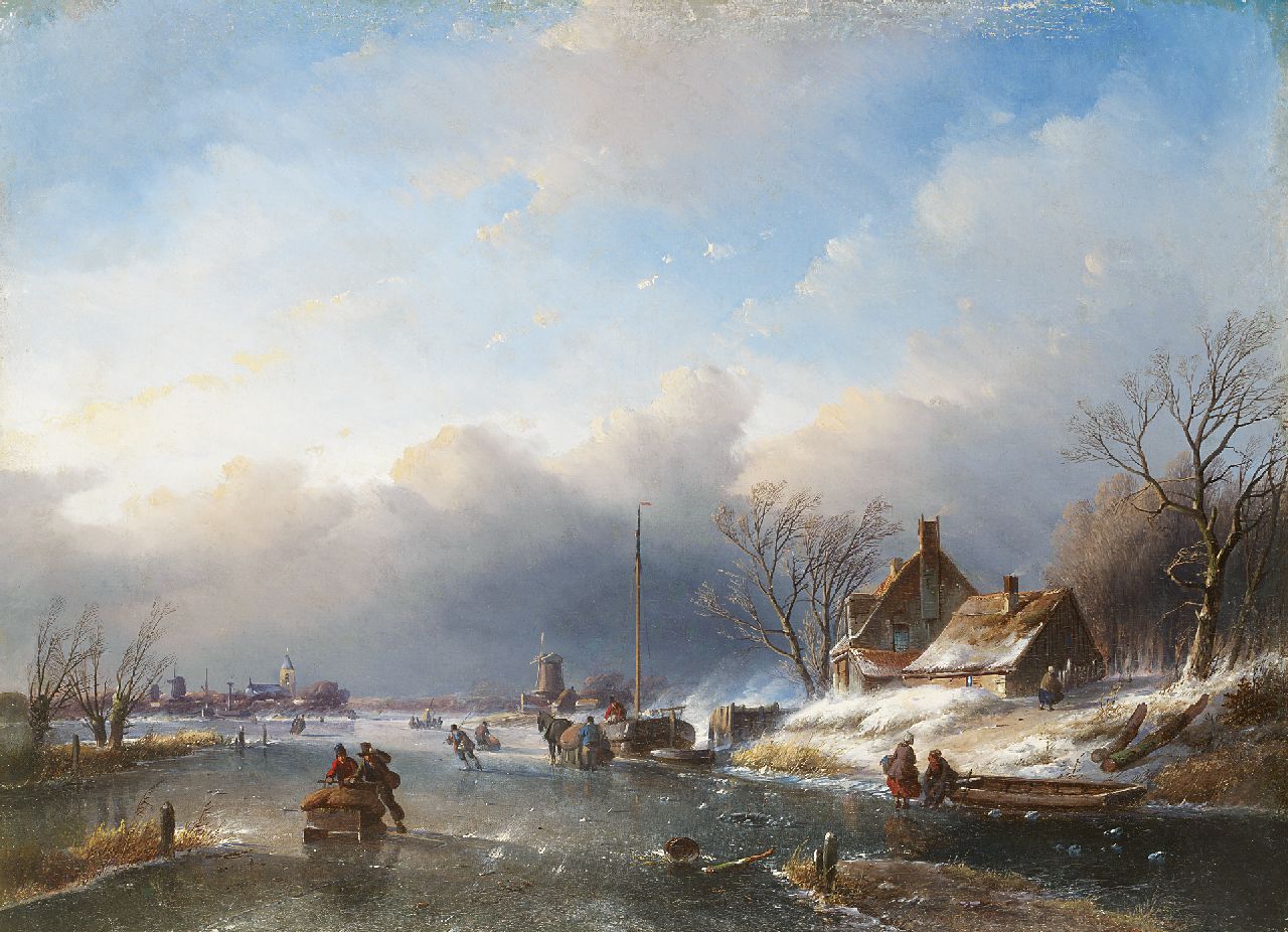 Jan Jacob Spohler | IJsgezicht met schaatsers, olieverf op doek, 59,5 x 80,5 cm, gesigneerd l.o.