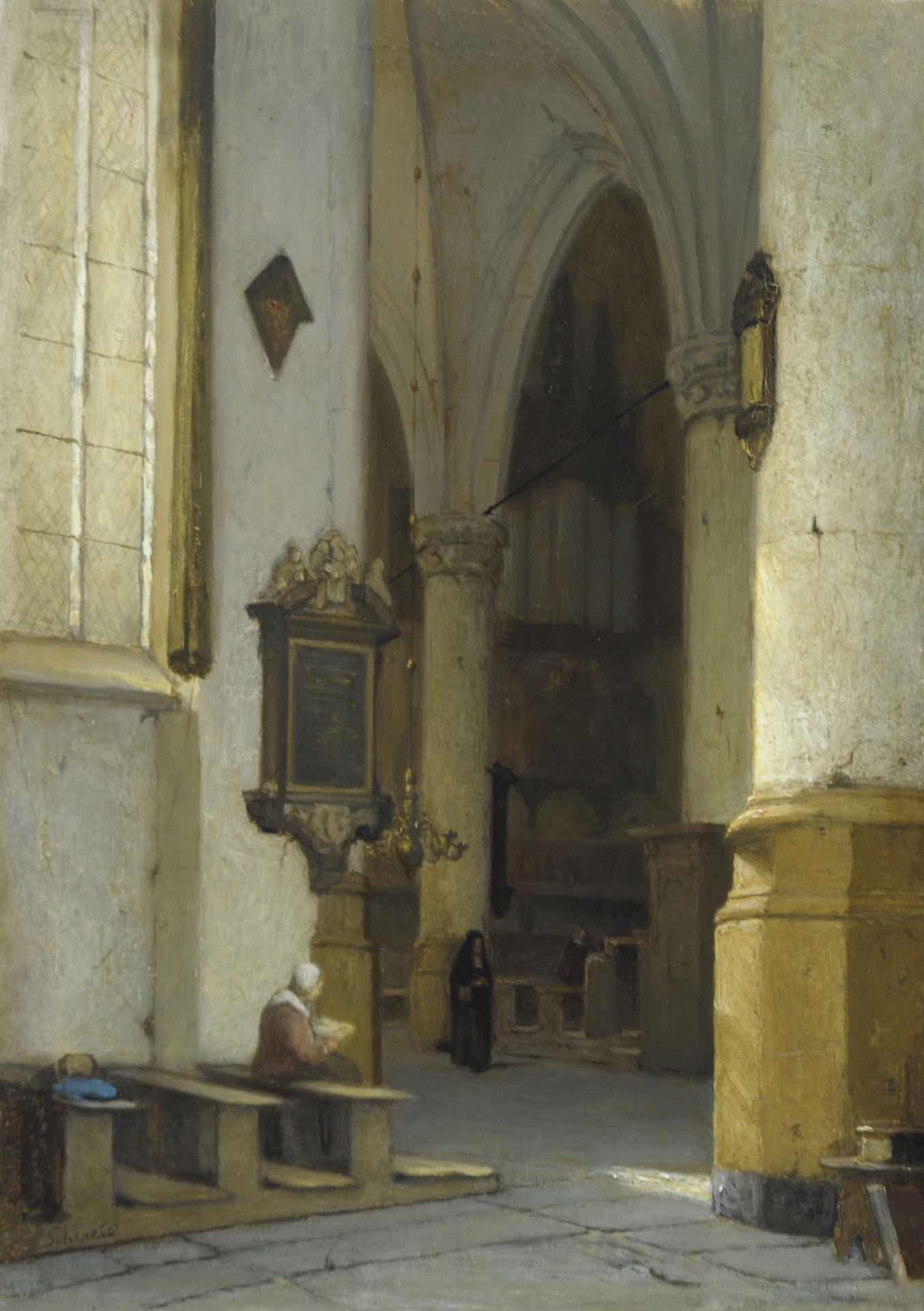 Jan Jakob Schenkel kunstwerk • schilderij • voorheen te koop Hollands kerkinterieur