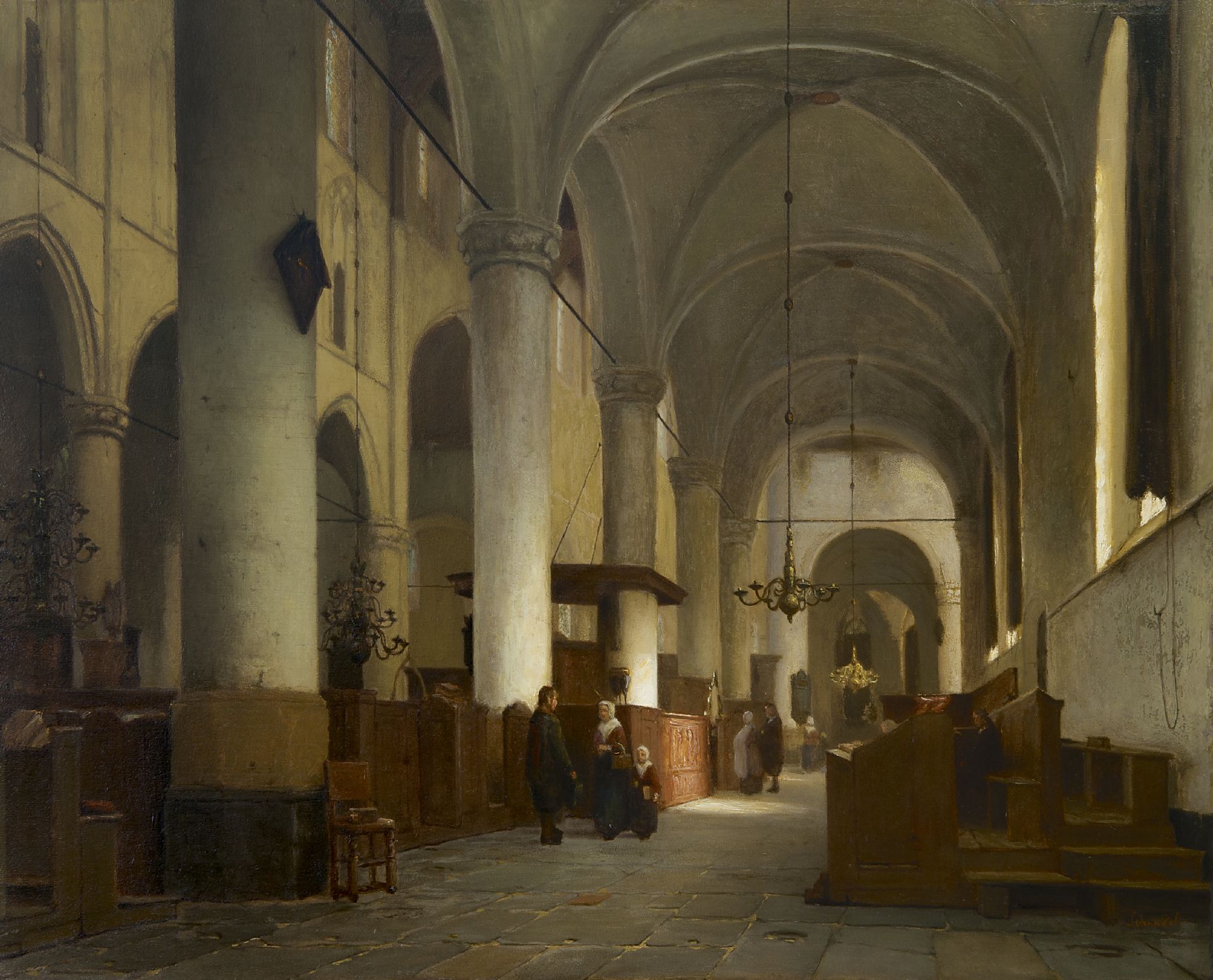 Jan Jakob Schenkel kunstwerk • schilderij • voorheen te koop Interieur van de Grote Kerk te Naarden
