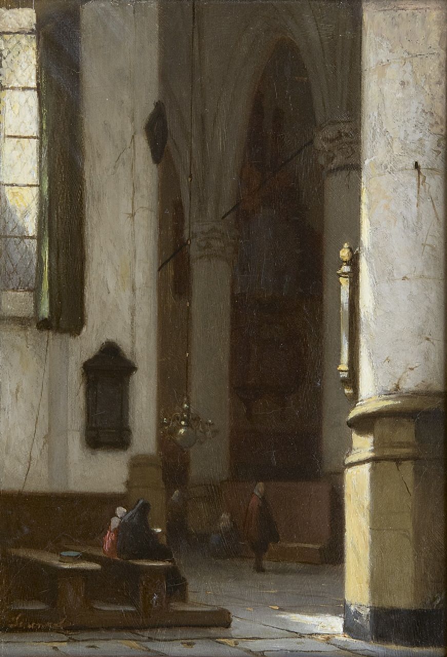 Jan Jakob Schenkel kunstwerk • schilderij • voorheen te koop Interieur van de Hooglandse Kerk te Leiden