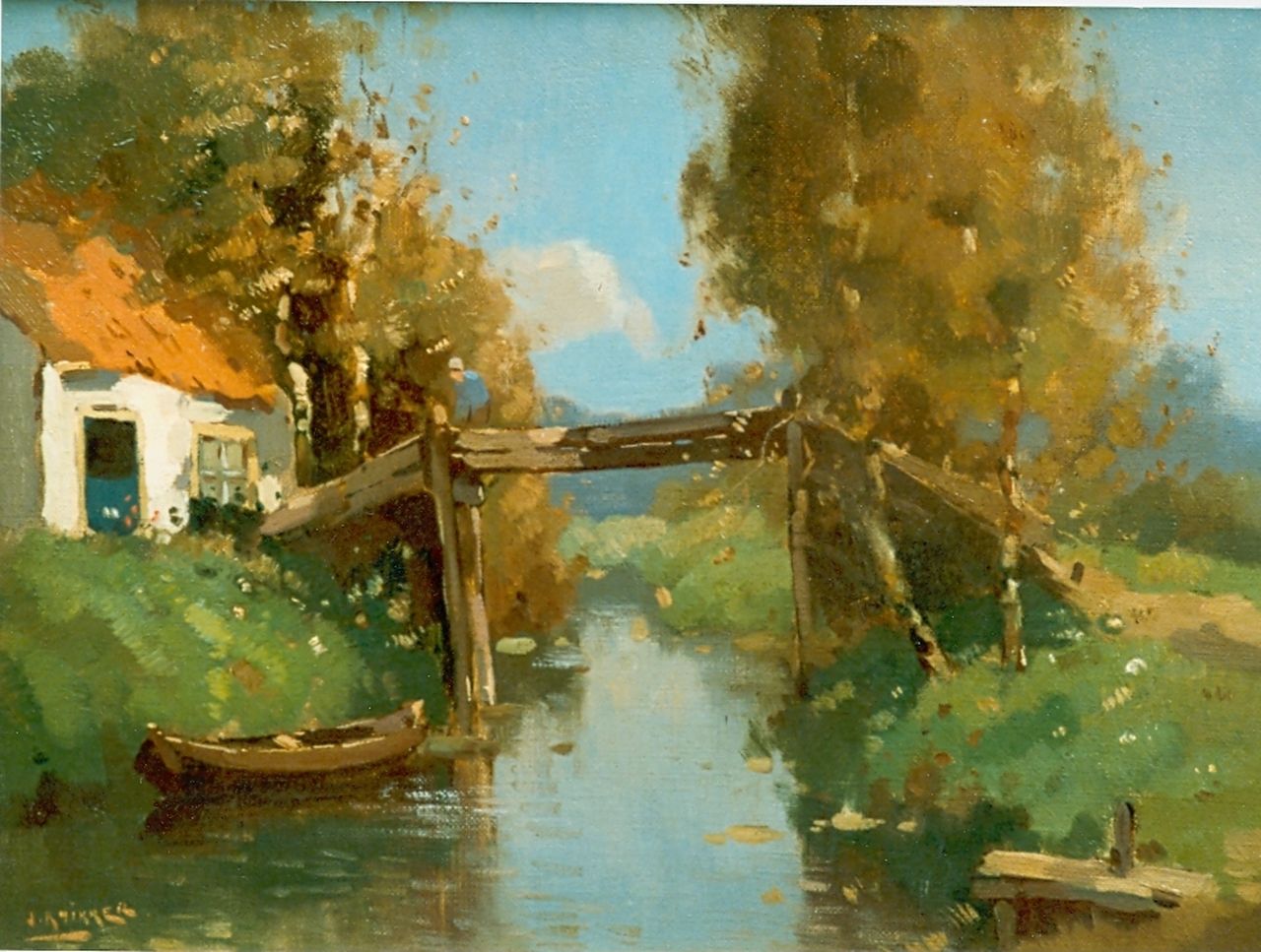 Jan Knikker jr. kunstwerk • schilderij • voorheen te koop Bruggetje bij Giethoorn