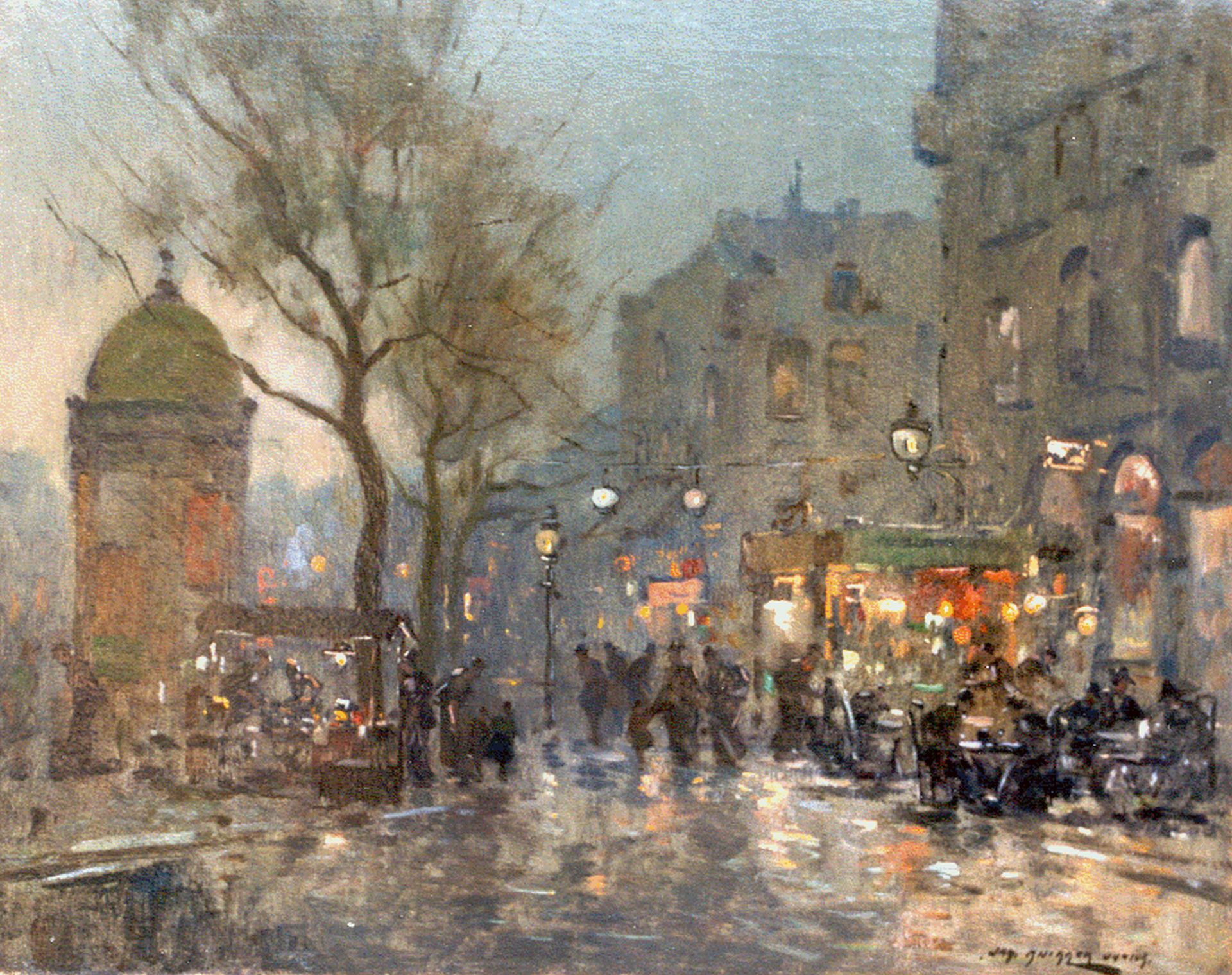 Jan Knikker jr. kunstwerk • schilderij • voorheen te koop Terrasje in Parijs bij avond