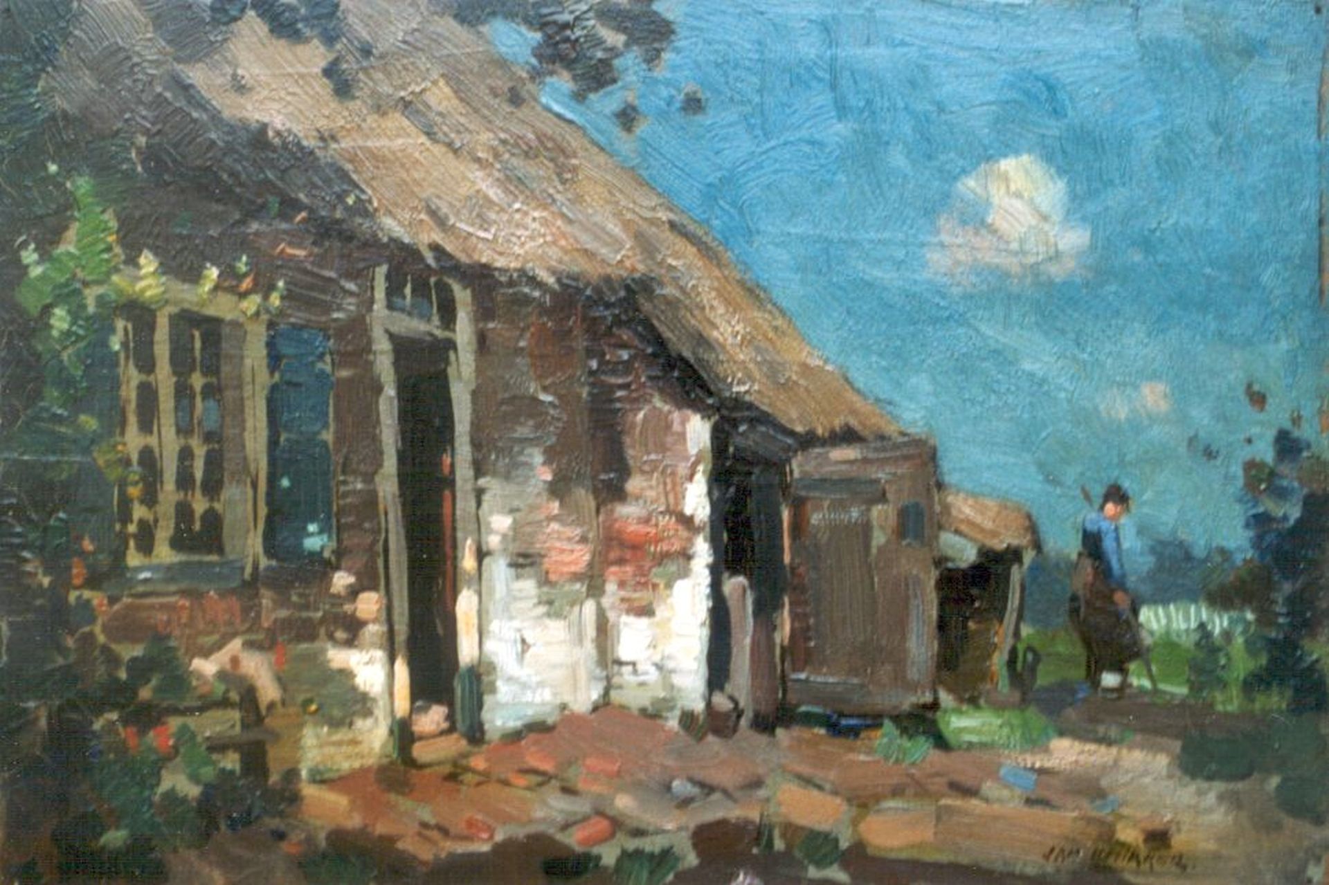 Jan Knikker sr. kunstwerk • schilderij • voorheen te koop Aan het werk bij de boerderij