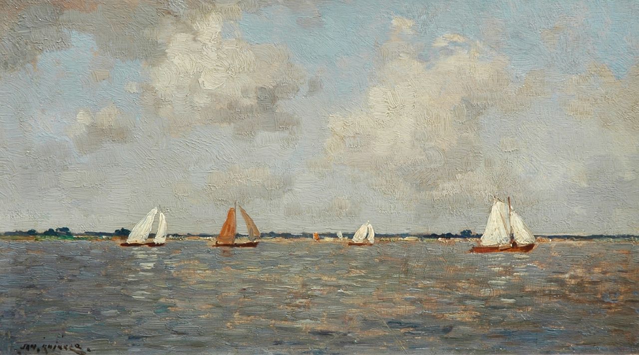 Jan Knikker sr. kunstwerk • schilderij • voorheen te koop Plasgezicht met zeilboten