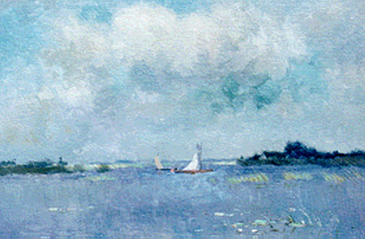 Jan Knikker sr. kunstwerk • schilderij • voorheen te koop Plasgezicht met zeilboten