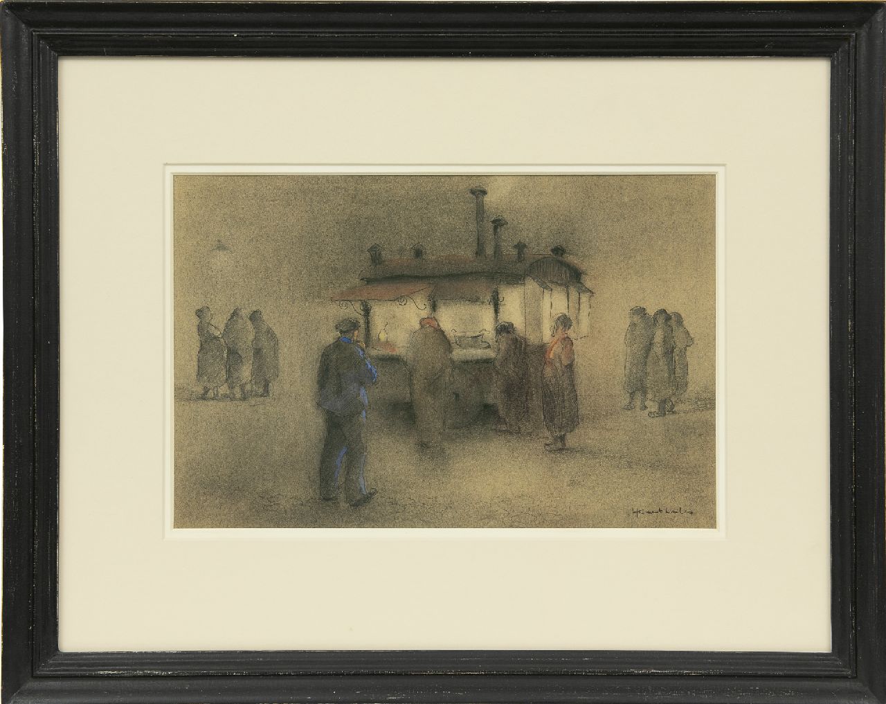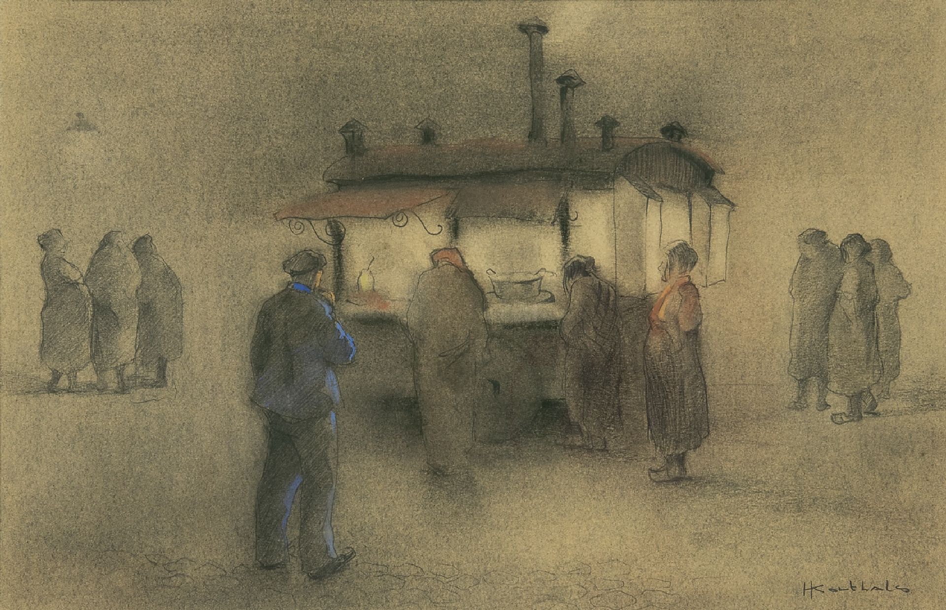 Jan Korthals kunstwerk • aquarel • tekening • voorheen te koop Bij de patatkraam