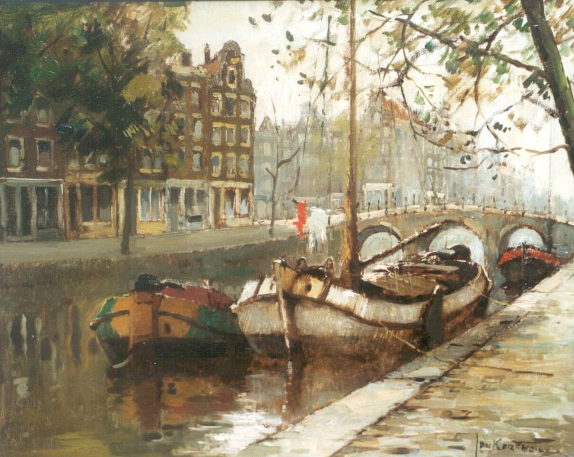 Jan Korthals kunstwerk • schilderij • voorheen te koop Amsterdams stadsgezicht