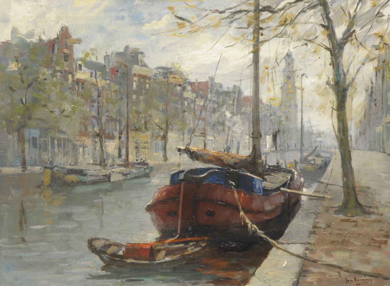 Jan Korthals kunstwerk • schilderij • voorheen te koop Gezicht op de Prinsengracht, Amsterdam