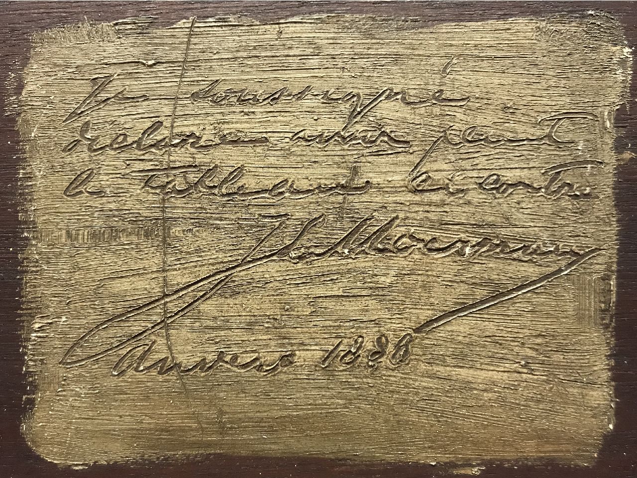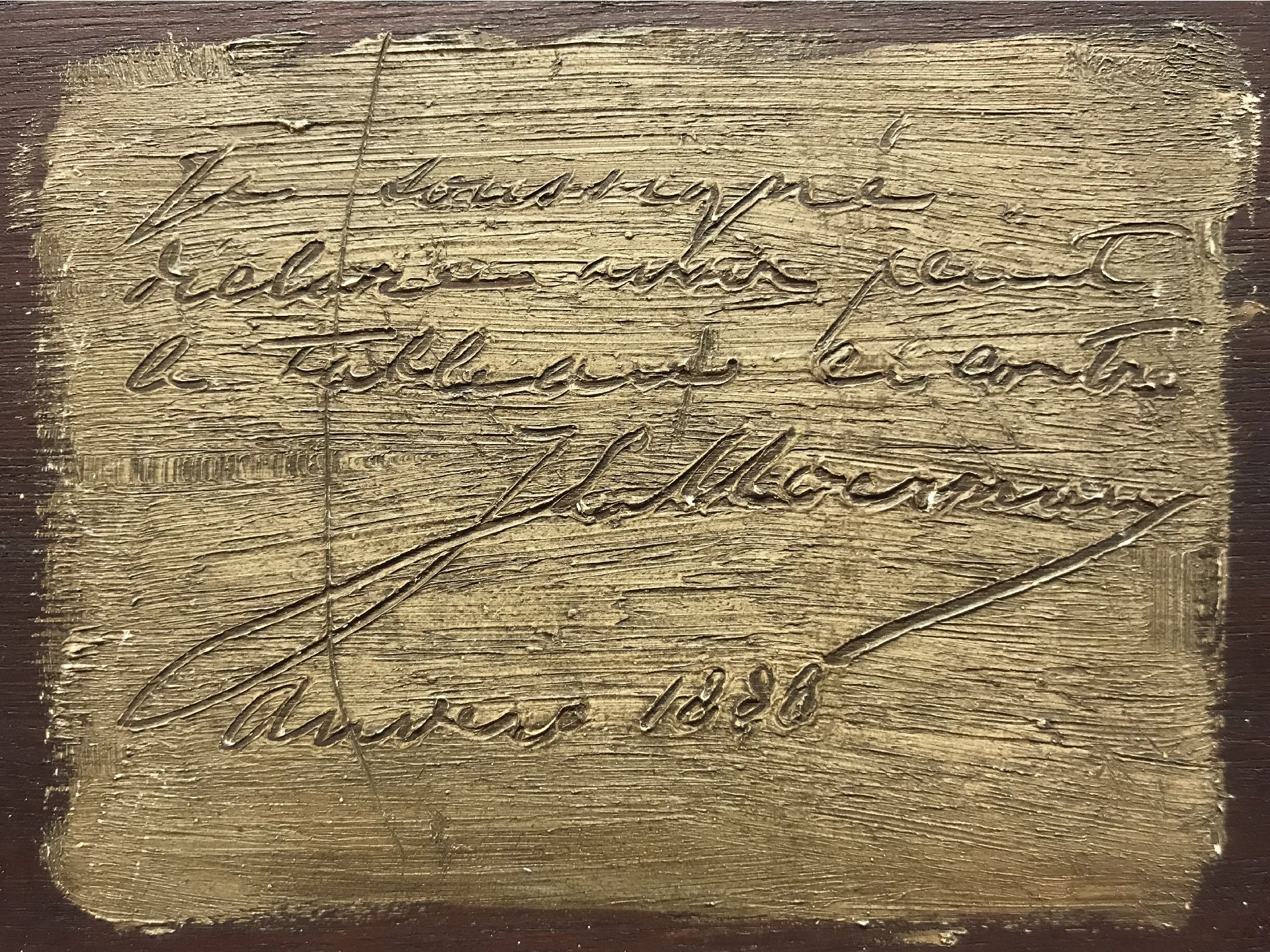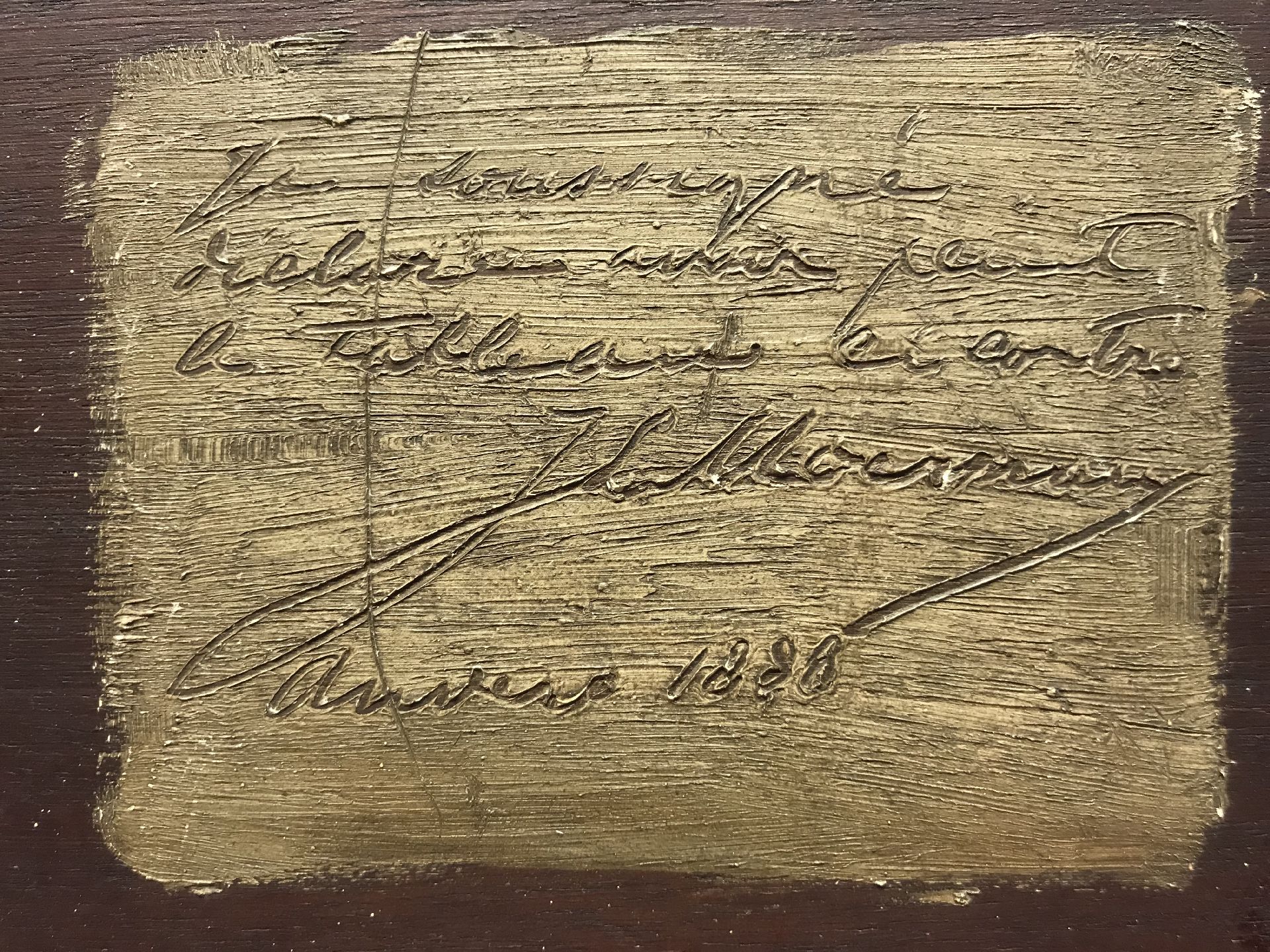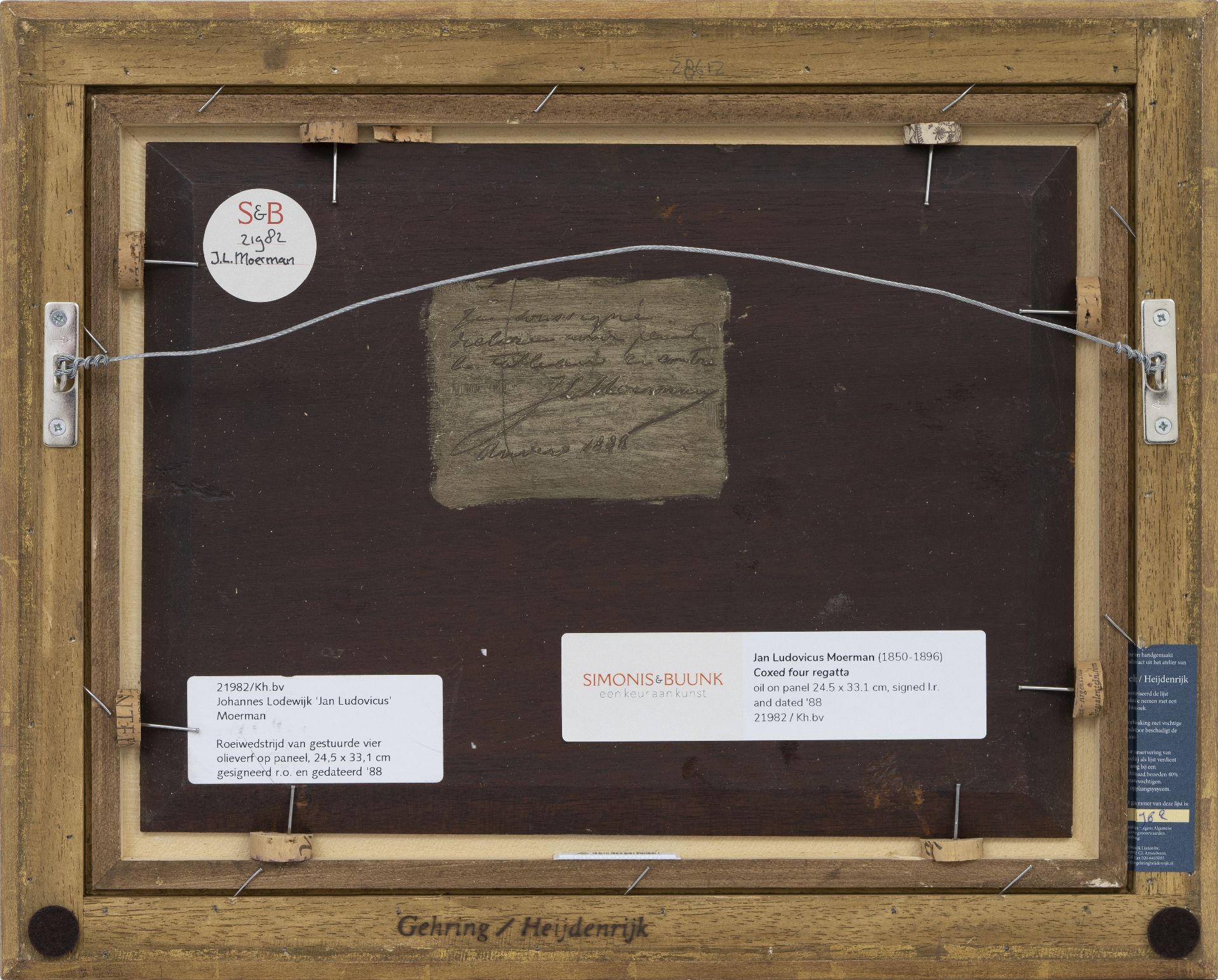 met verso authenticiteitsverklaring van de schilder: 'Je soussigné déclare avoir peint le tableau ci-contre, J.L. Moerman, Anvers 1888'
