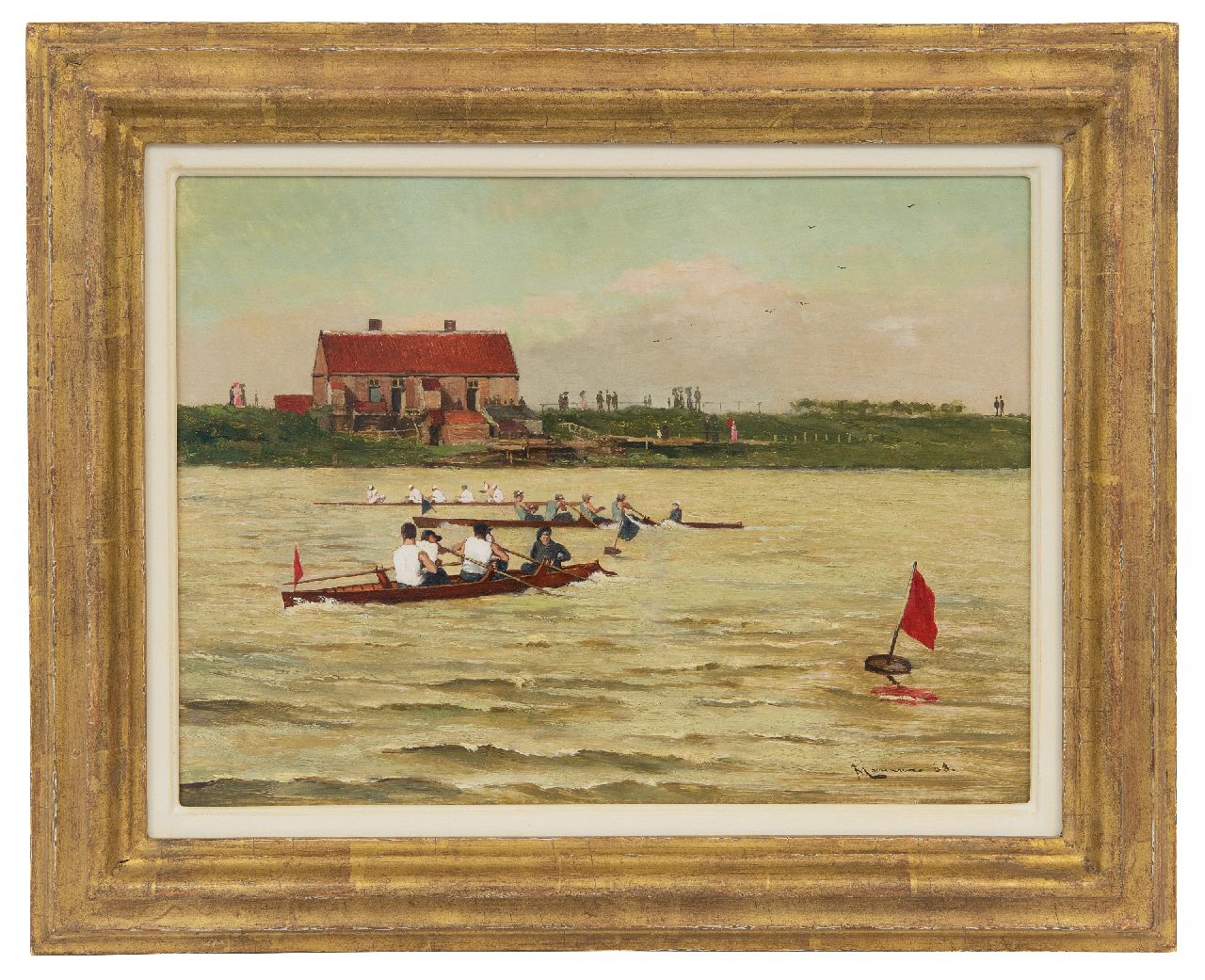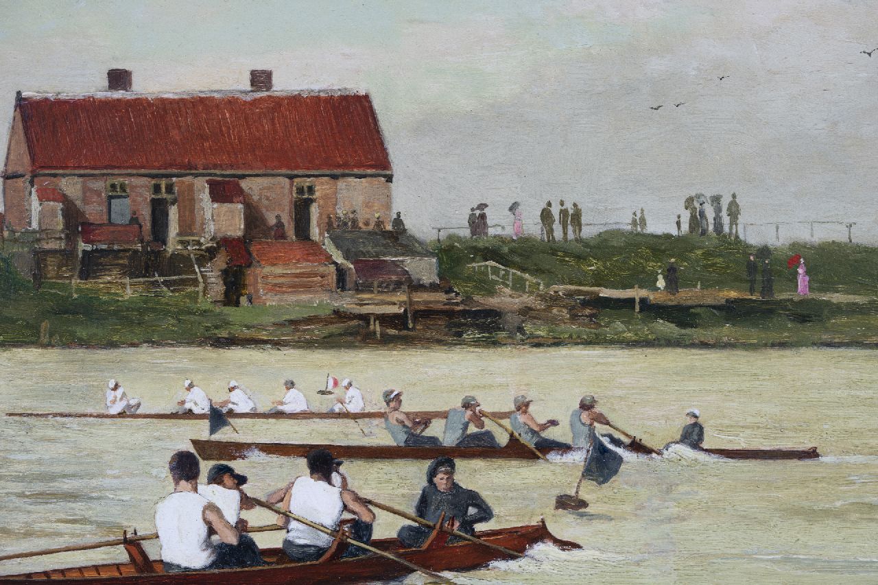 Jan Ludovicus Moerman kunstwerk • schilderij • te koop Roeiwedstrijd van gestuurde vier