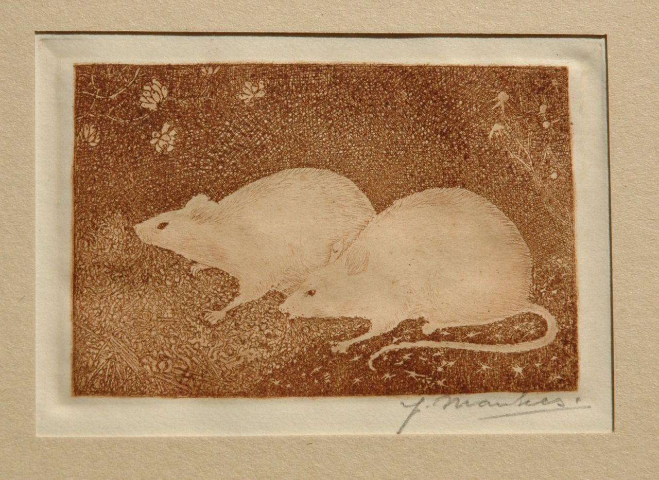 Jan Mankes kunstwerk • grafiek • voorheen te koop Twee muizen