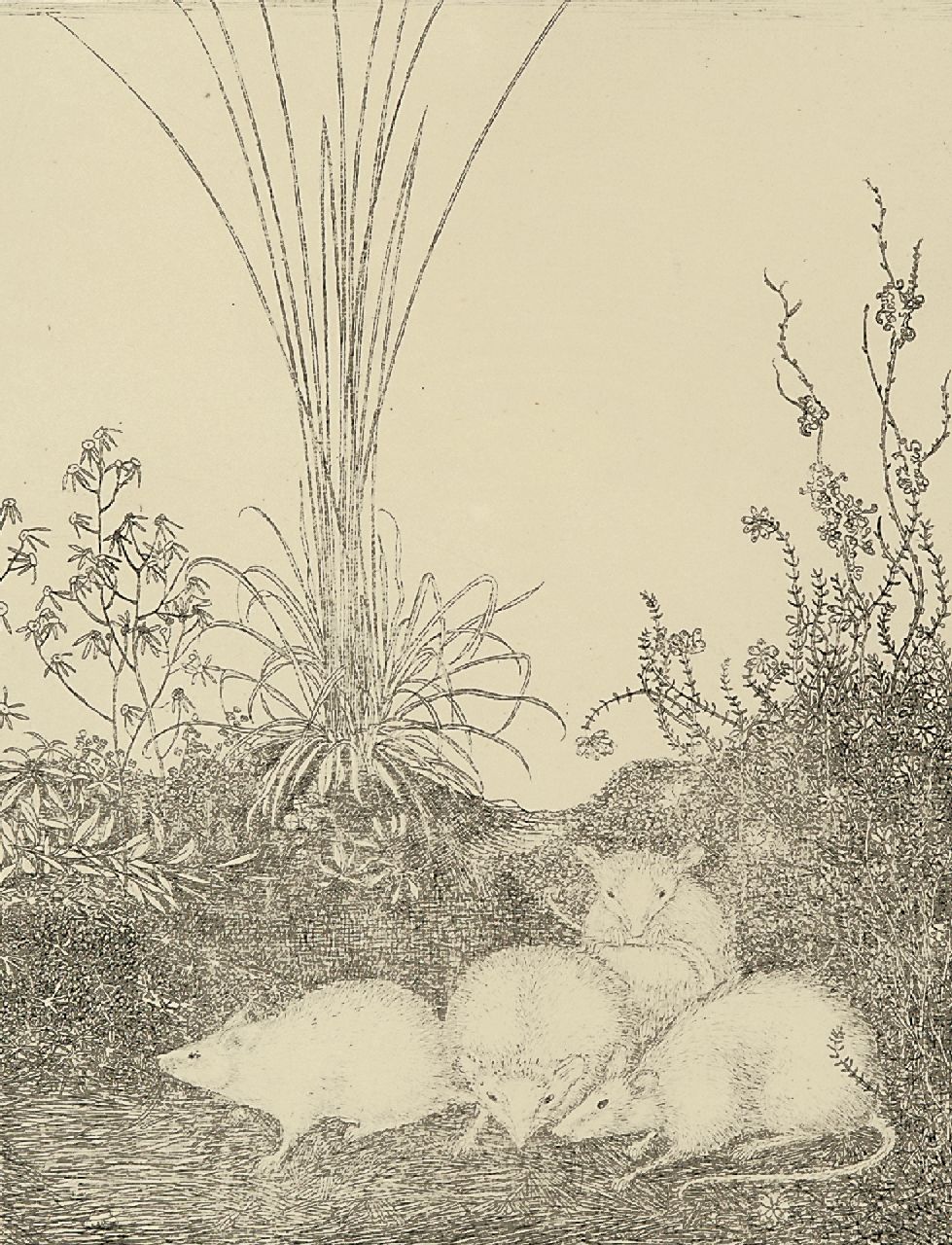 Jan Mankes | Twee muizen, kopergravure op papier, 10,7 x 13,2 cm, gesigneerd r.o. (in potlood) en te dateren 1916