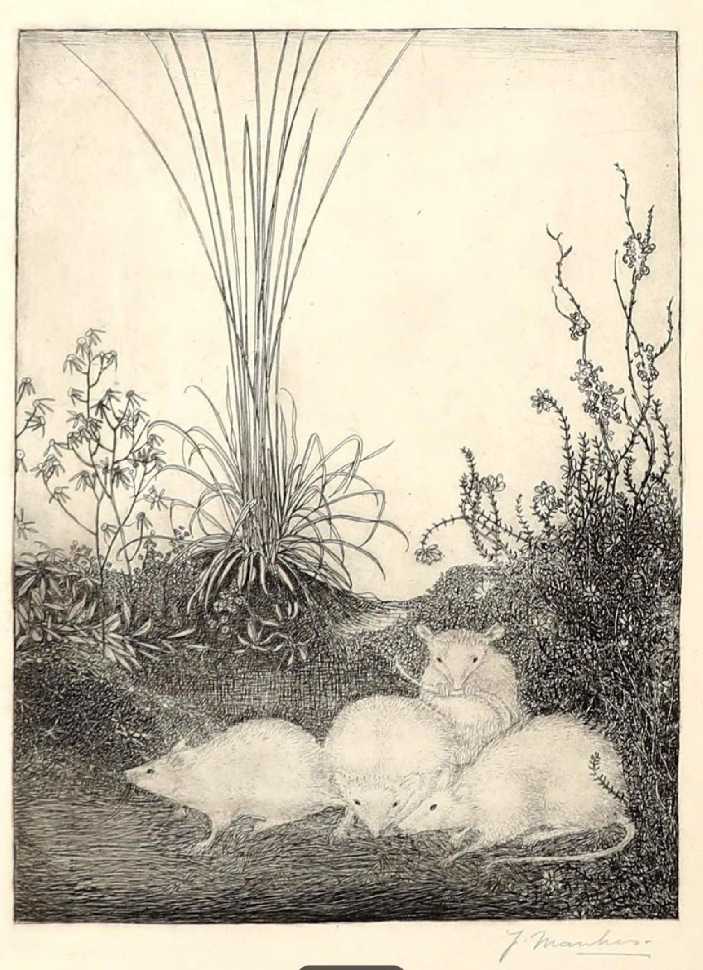 Jan Mankes kunstwerk • grafiek • voorheen te koop Vier muizen