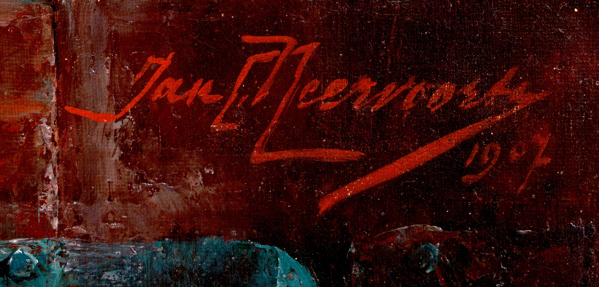 olieverf op doek 28,3 x 53,8 cm, gesigneerd rechtsboven en gedateerd 1907