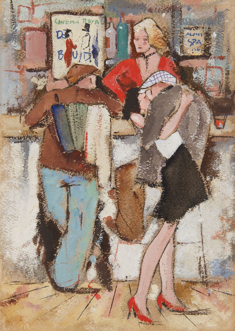 Jan Rijlaarsdam kunstwerk • aquarel • tekening • te koop Aan de bar