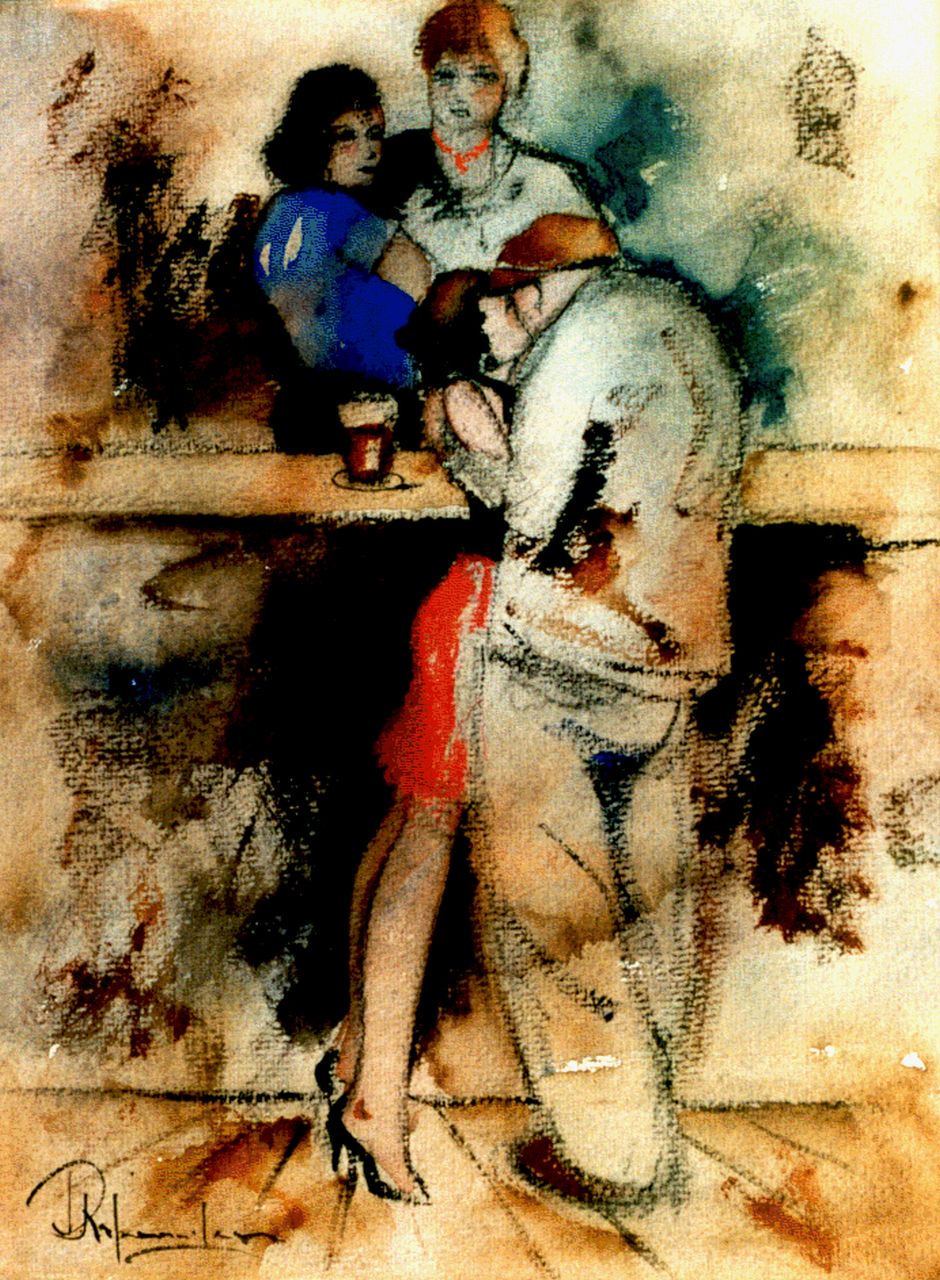 Jan Rijlaarsdam kunstwerk • aquarel • tekening • voorheen te koop Aan de bar