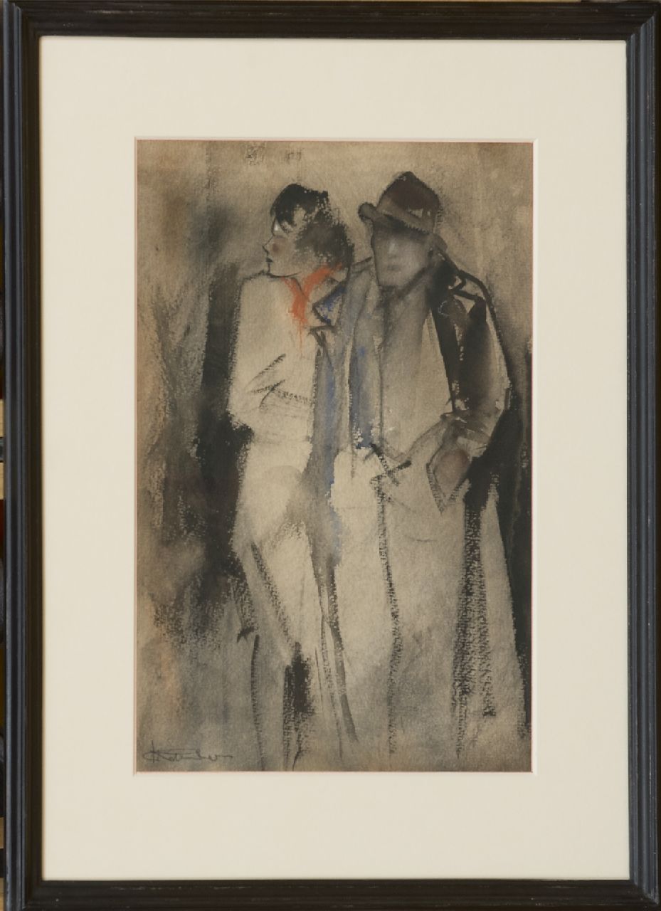 Jan Rijlaarsdam kunstwerk • aquarel • tekening • voorheen te koop Man en vrouw bij avond