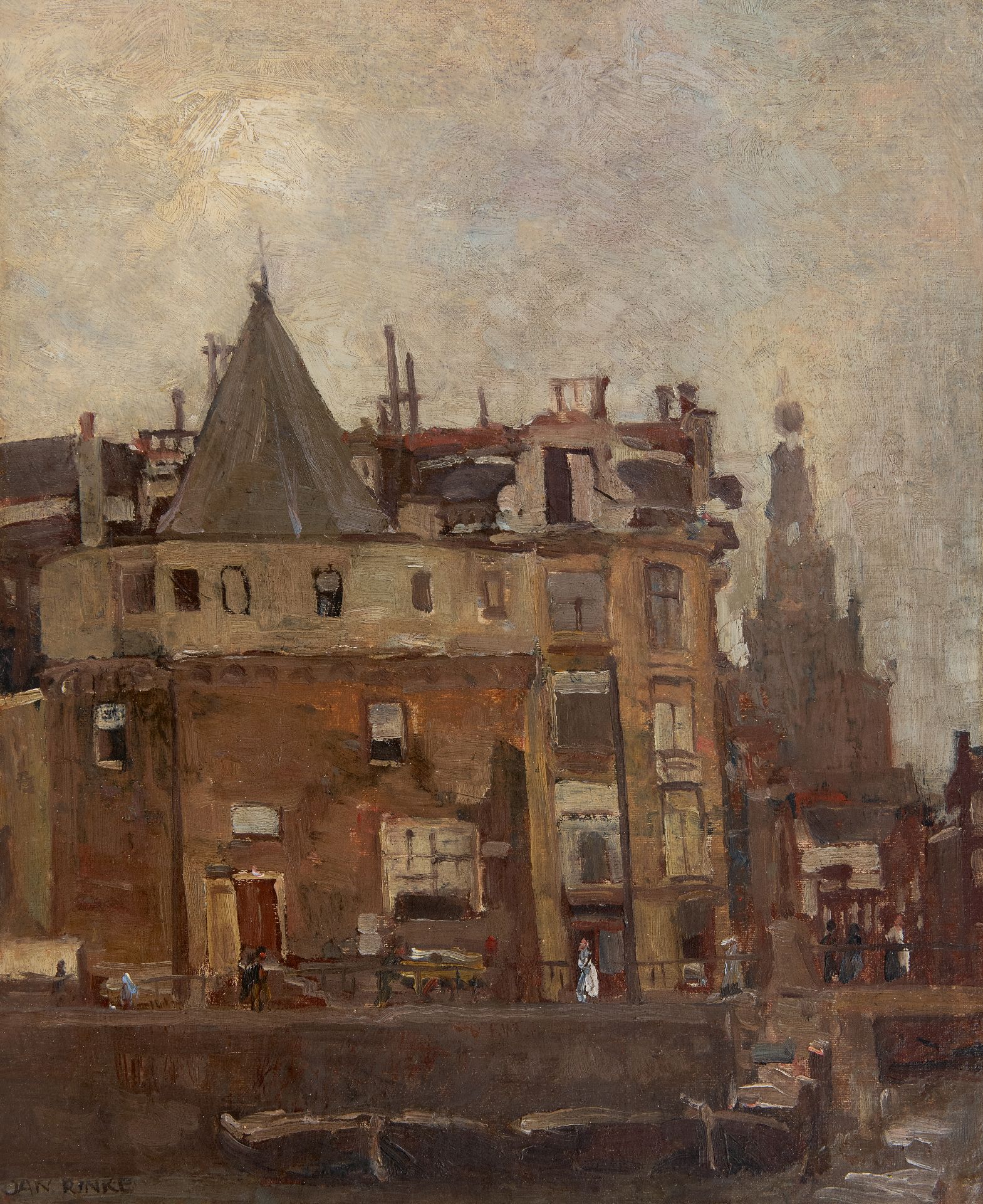 Jan Rinke kunstwerk • schilderij • te koop De Geldersekade met de Schreierstoren, Amsterdam
