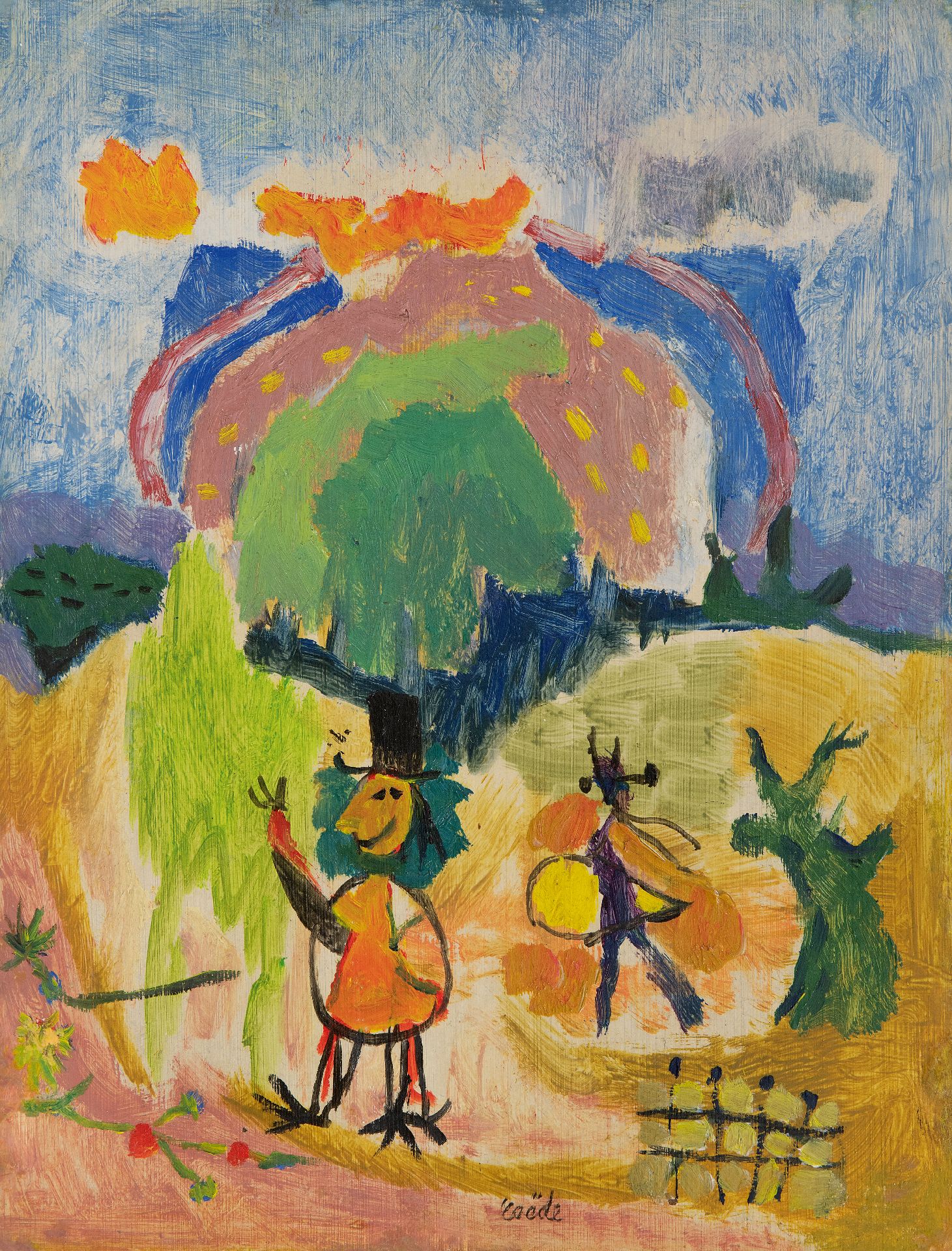 Jan Roëde | Figuren met palmboom, olieverf op doek, 45,9 x 59,9 cm, gesigneerd m.b. en gedateerd '69