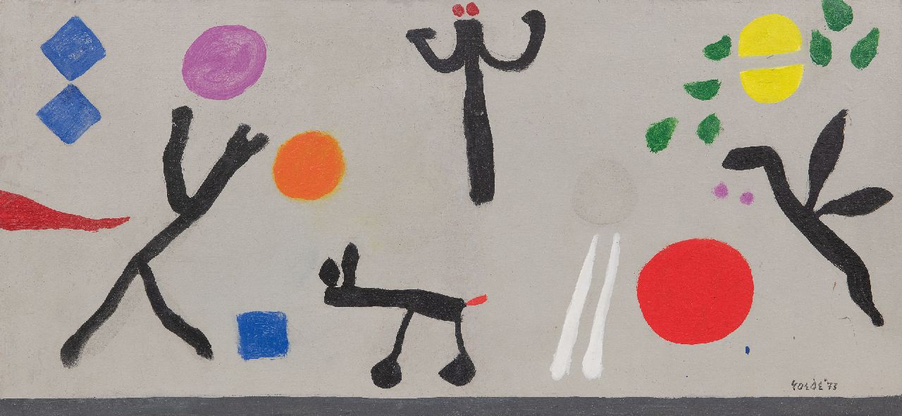 Jan Roëde | Figuren met palmboom, olieverf op doek, 45,9 x 59,9 cm, gesigneerd m.b. en gedateerd '69