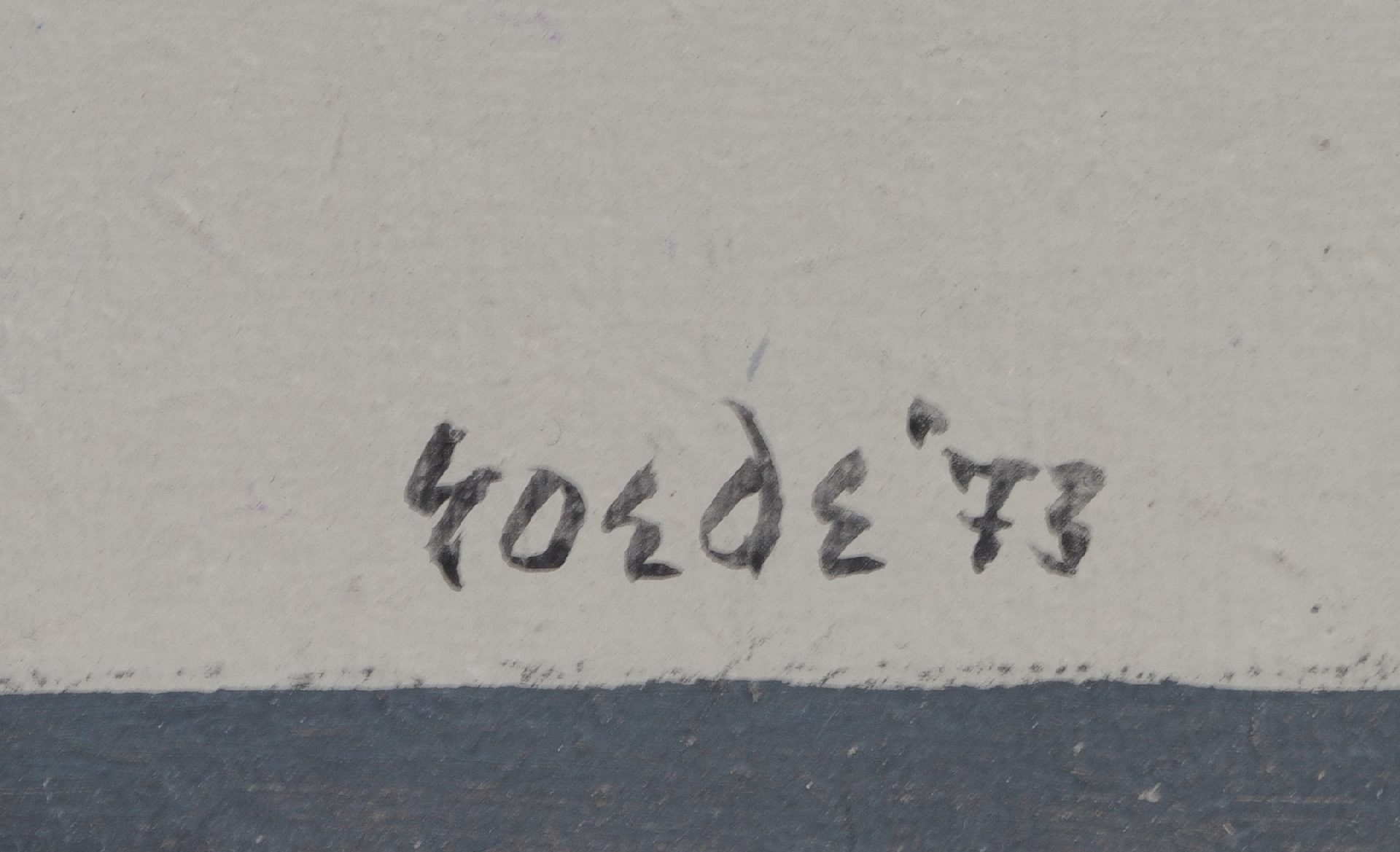 olieverf op paneel 29,0 x 62,0 cm, gesigneerd rechtsonder en gedateerd '73