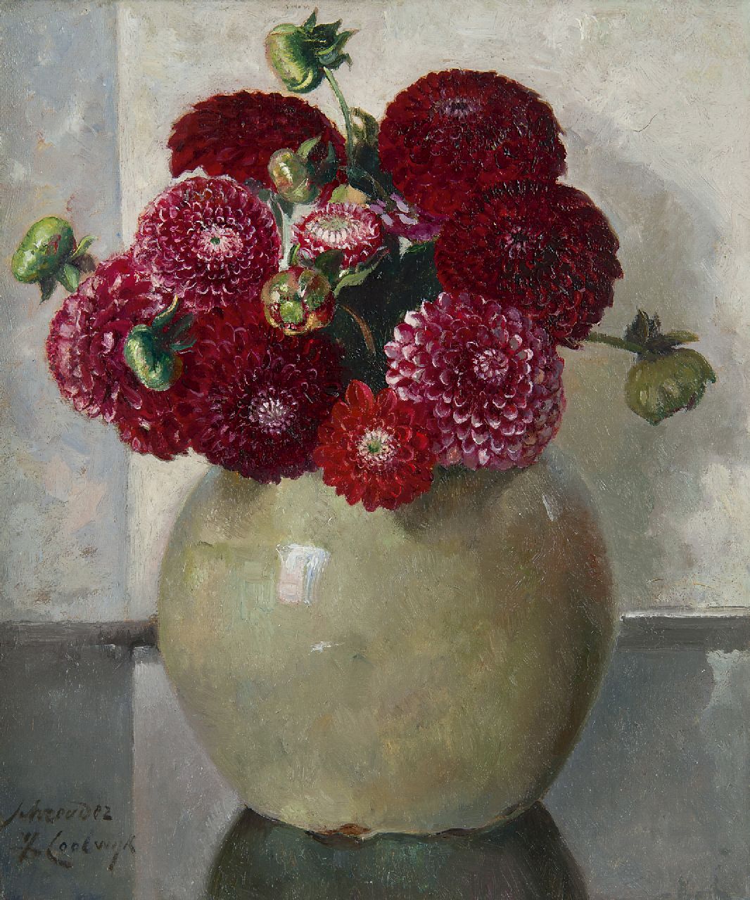 Jan Schreuder van de Coolwijk kunstwerk • schilderij • voorheen te koop Dahlia's
