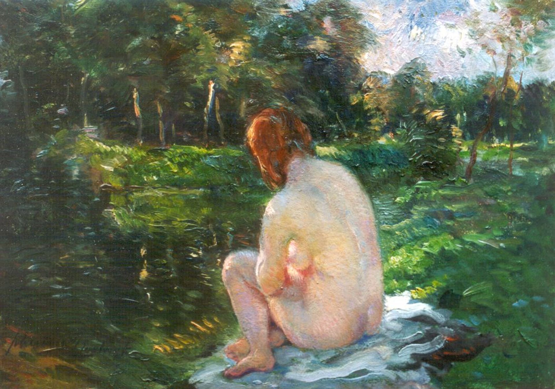 Jan Schreuder van de Coolwijk kunstwerk • schilderij • voorheen te koop Landschap met zittend naakt